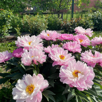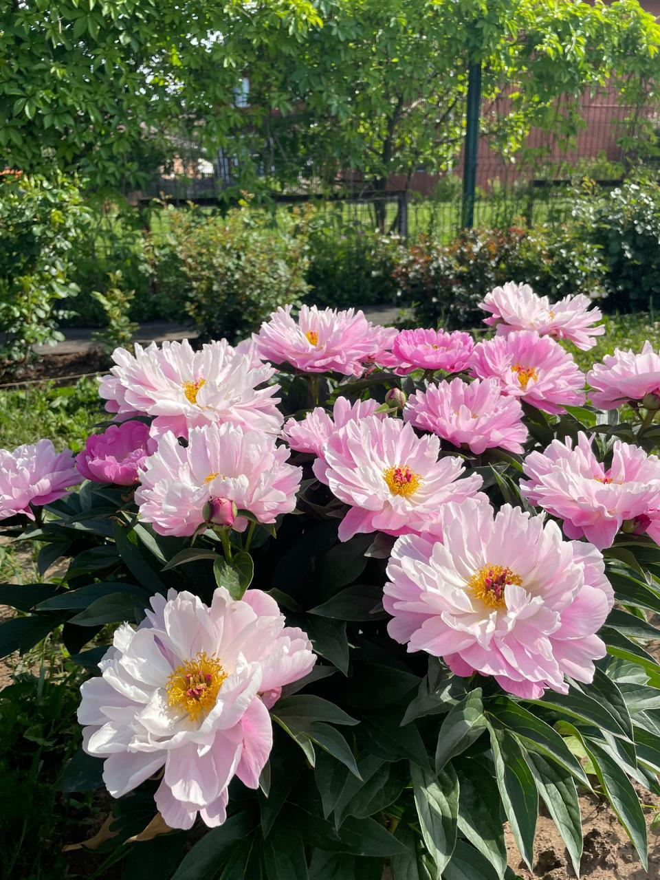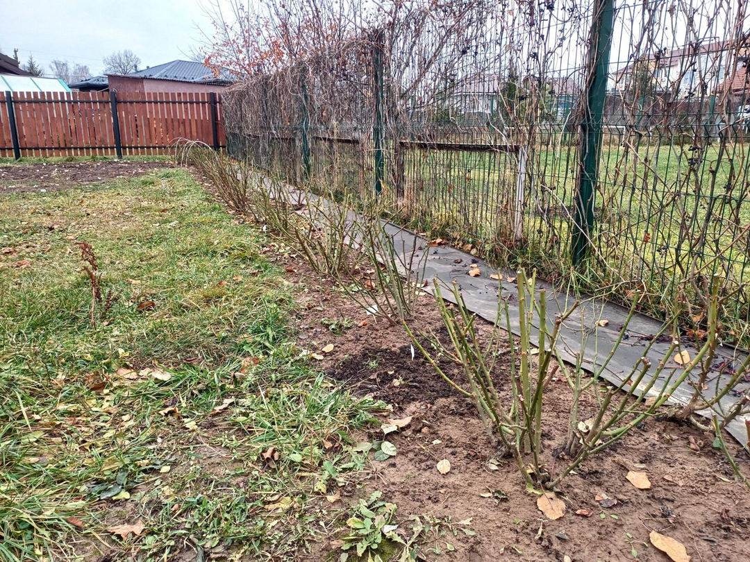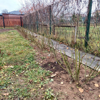 Высажены молодые фруктовые деревья и кусты. Много цветов.