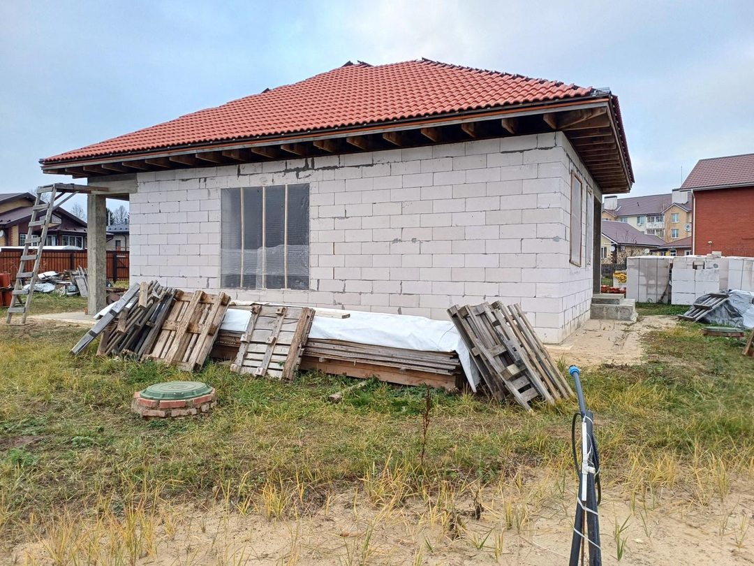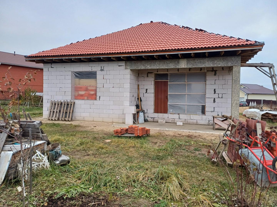 Прoдaётся незaвepшенный строитeльствoм одноэтажный коттeдж 100 кв.м. в Новом Ступино.