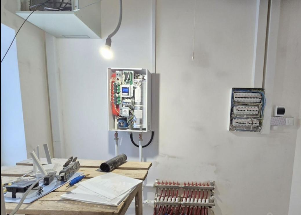 Теплый пол. В стяжке разведены трубы с теплоносителем, все это подключено к котлу. У электрокотла есть эконлмичный режим.