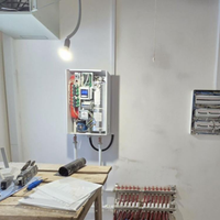 15 кВт, вся электропроводка разведена по точкам, есть кабельный журнал. Разводка в ПВХ гофре по потолку.