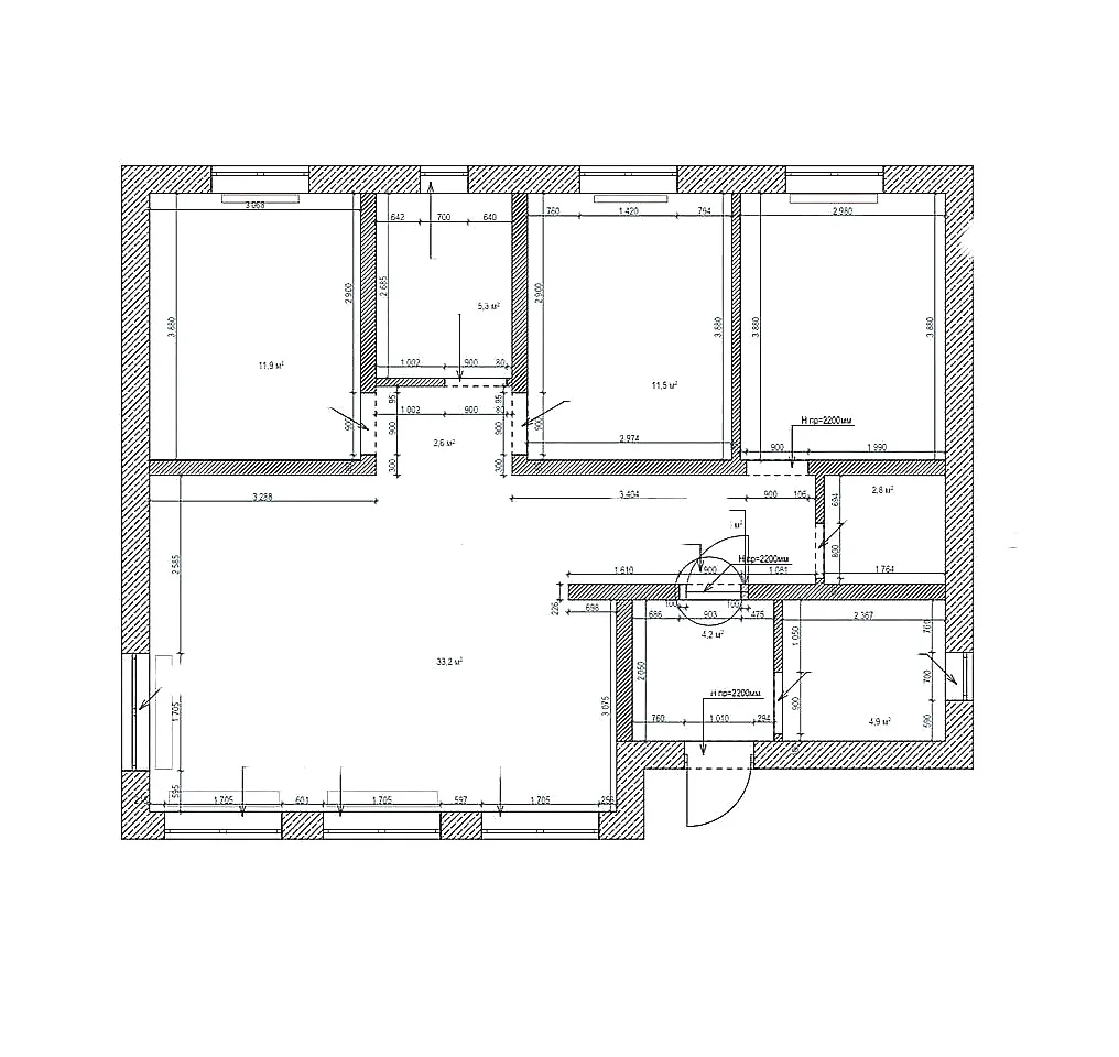 • Площадь кухни 33,2 м²