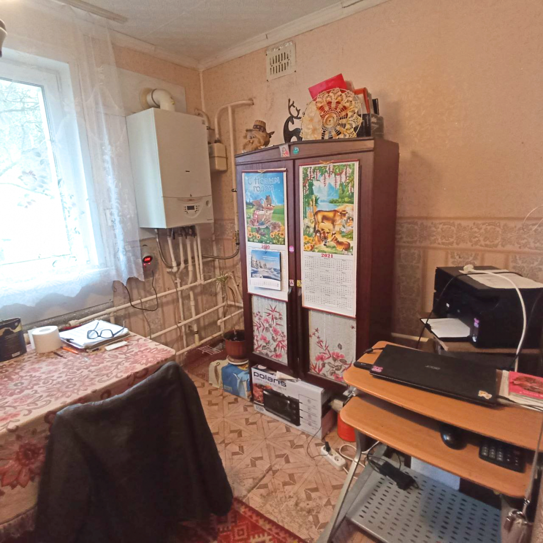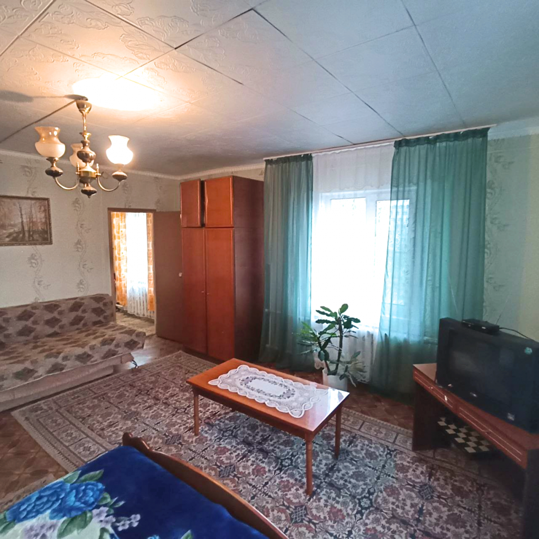 Предлагается просторный кирпичный дом площадью 109 м² с четырьмя комнатами, везде окна ПВХ, двумя санузлами, мастерской, подвалом и участком 12 соток с баней и теплицей, расположенный не далеко от города.