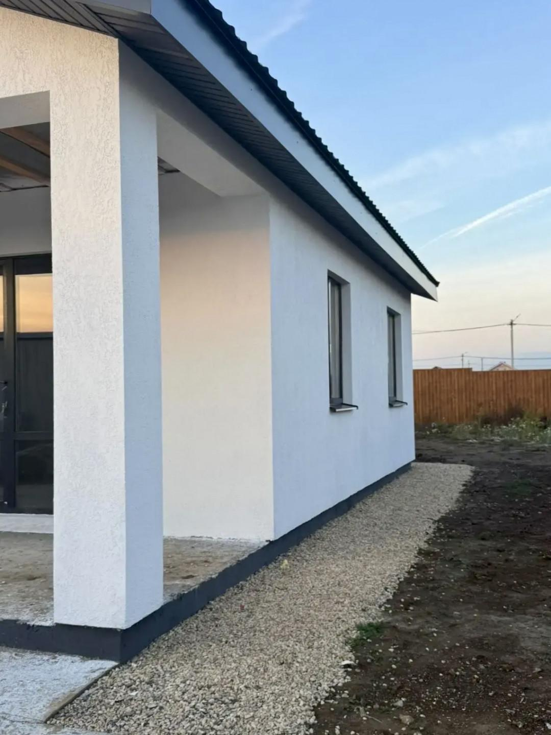 в дом установлен электрический котел. Кровля металлочерепица.Потолок утеплен эковатой 200 мм.Теплый водяной пол. Электричество 15 кВтКанализация - септик, колодец 9 .Стены внутри - декоративная моющаяся штукатурка.Пол - ламинат.Кухня-гостинная,3 спальни,санузел,котельная.Стены снаружи - декоративная штукатурка.