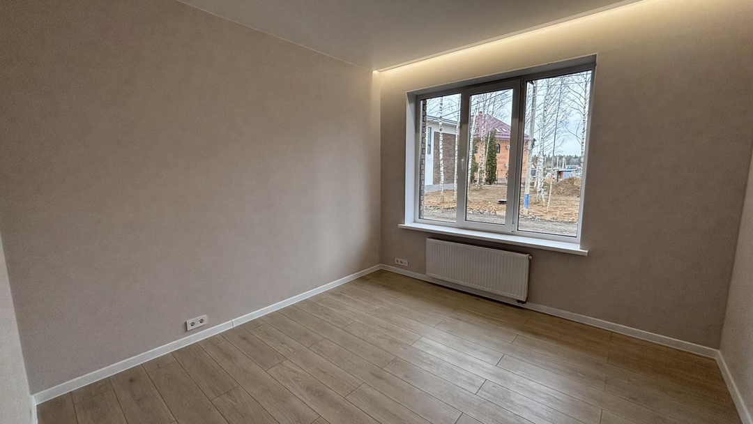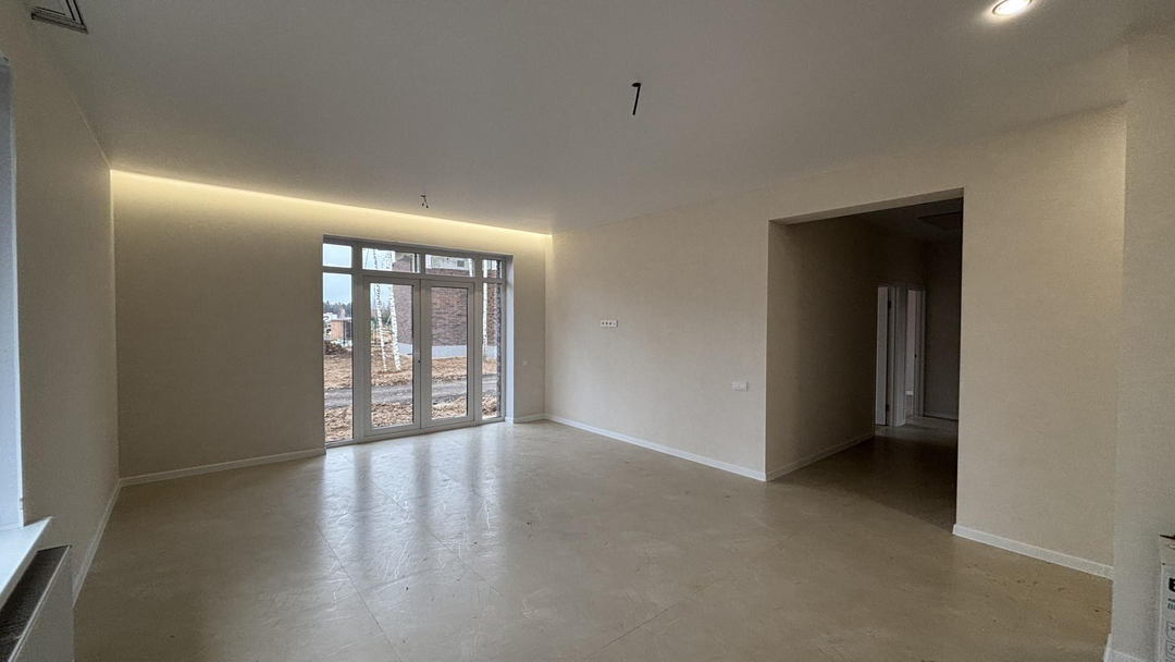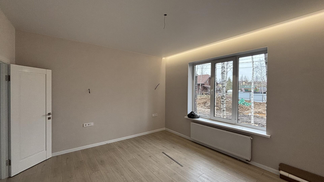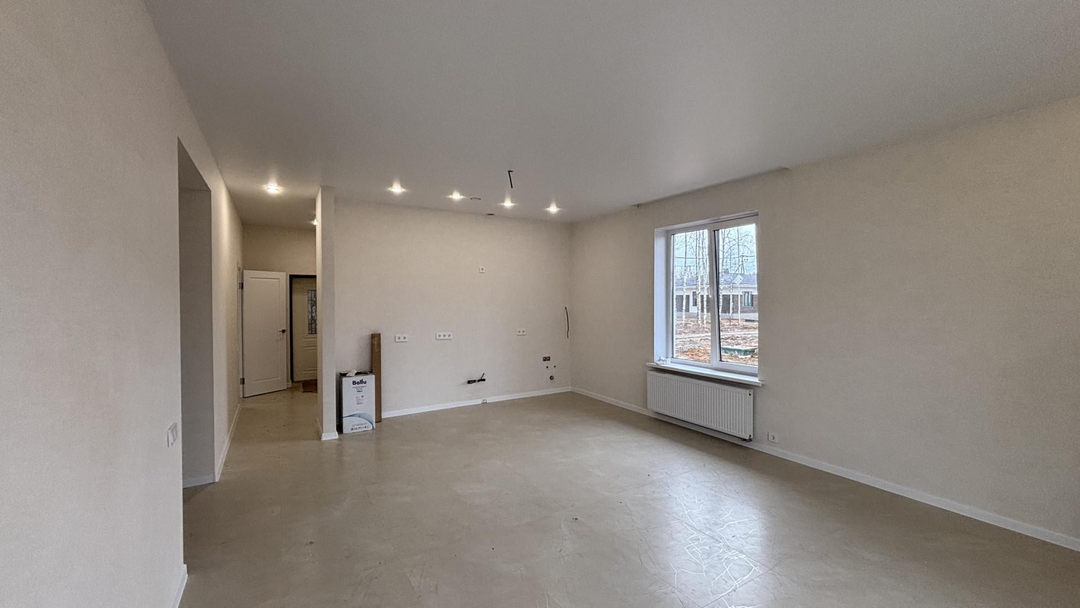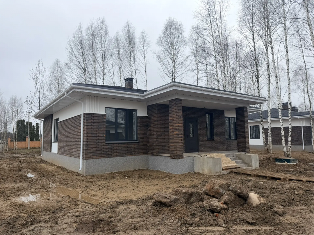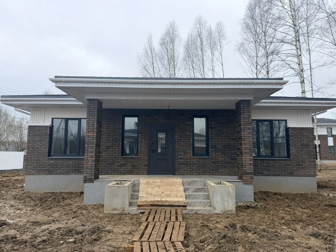 Мы используем только надежные и качественные материалы: стены из газобетона Bonolit и облицовочного кирпича, свайно-ростверковый фундамент с утепленной плитой, мягкую черепицу Technonicol с утеплением 200 мм на кровле. Установлены окна Kaleva с двухкамерным стеклопакетом и входная дверь с терморазрывом для сохранения тепла. В доме уже есть готовая электрика с LED-освещением и стальные радиаторы Rommer для эффективного отопления.