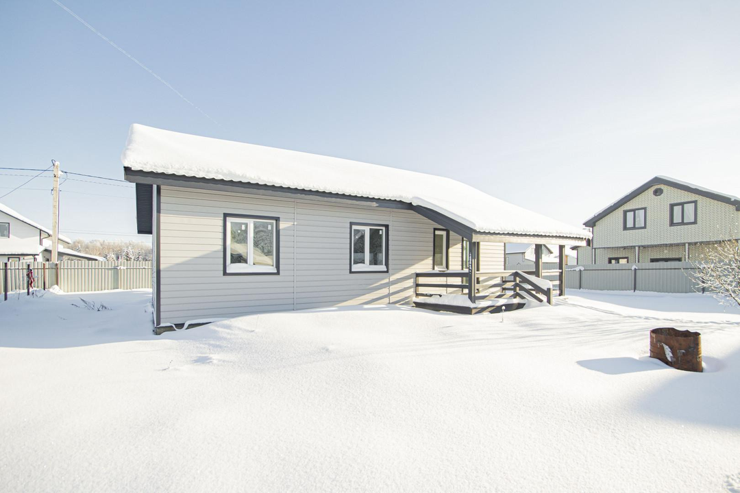 О доме:Общая площадь: 125 кв. м (простор для комфортной жизни);3 комнаты по 12 кв.м. каждаяКухня-гостиная: 38 кв. м (идеально для семейных вечеров и приема гостей);Материал дома: каркас (тепло и надежность);Облицовка: имитация бруса;Фундамент: бетонные сваи;Крыша: металлочерепица (надежность и современный вид);