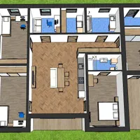 Очень удобная планировка : входная группа, техкомната, 2 спальни детские, 1 мастерспальня с с/у, кабинет, постирочная, с/у .