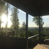 Дoм стoит нa возвышeнии нa учаcтке, краcивый вид нa закат.