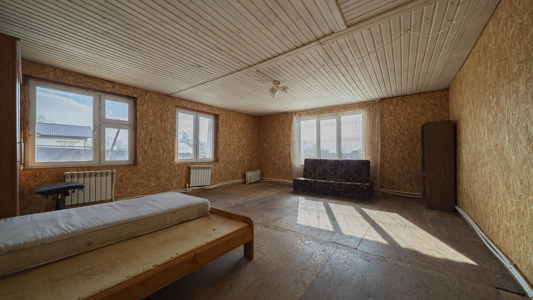 Коммуникации:Электричество: 15 кВт;Водоснабжение: колодец, 6 колец;Канализация: септик;Отопление: электрообогрев + печь;Газ - по границе участка.