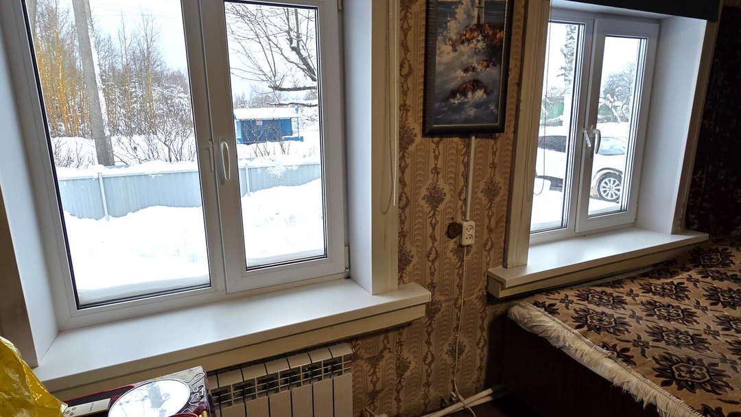 Фундамент ленточный, дом из бревна-не новый, но в хорошем состоянии. Окна все ПВХ.