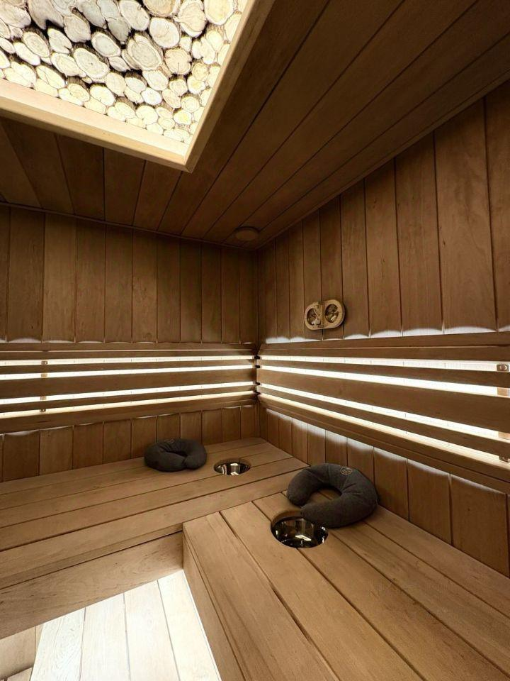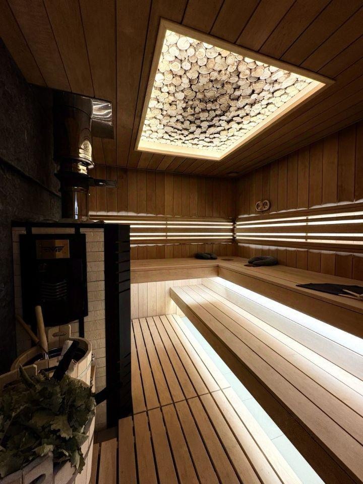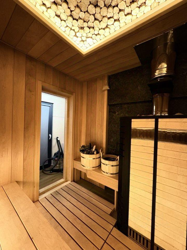 На участке также расположена русская баня с приватным выходом к лесному озеру и фруктовый сад с зоной барбекю.
