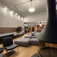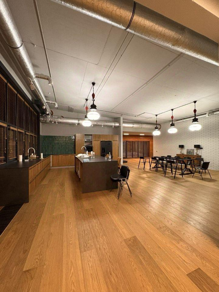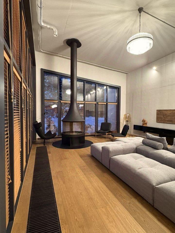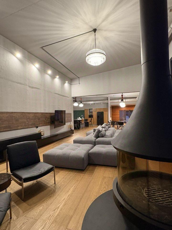 -просторная кухня гостинная с камином и вторым светом,