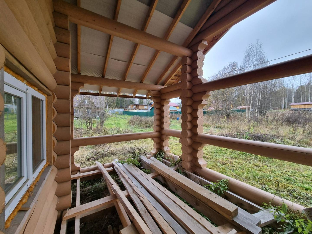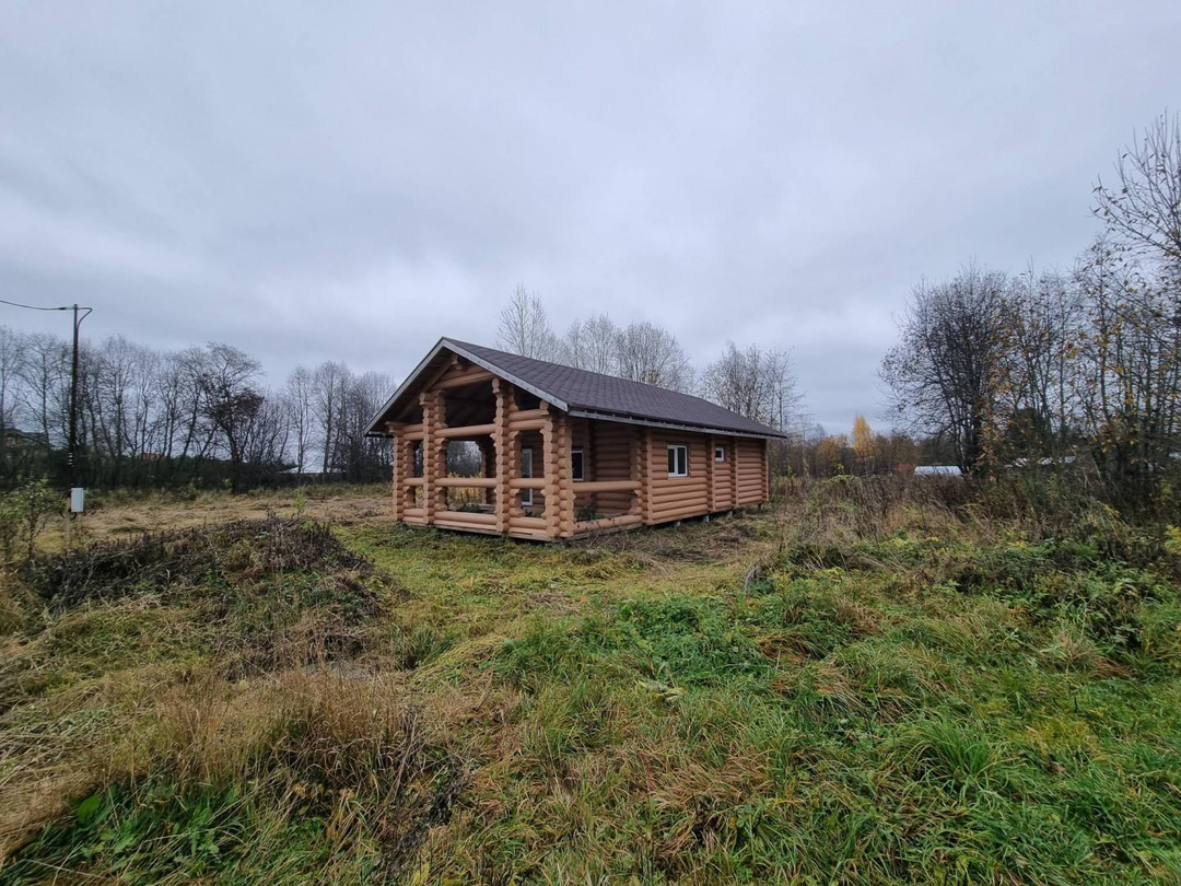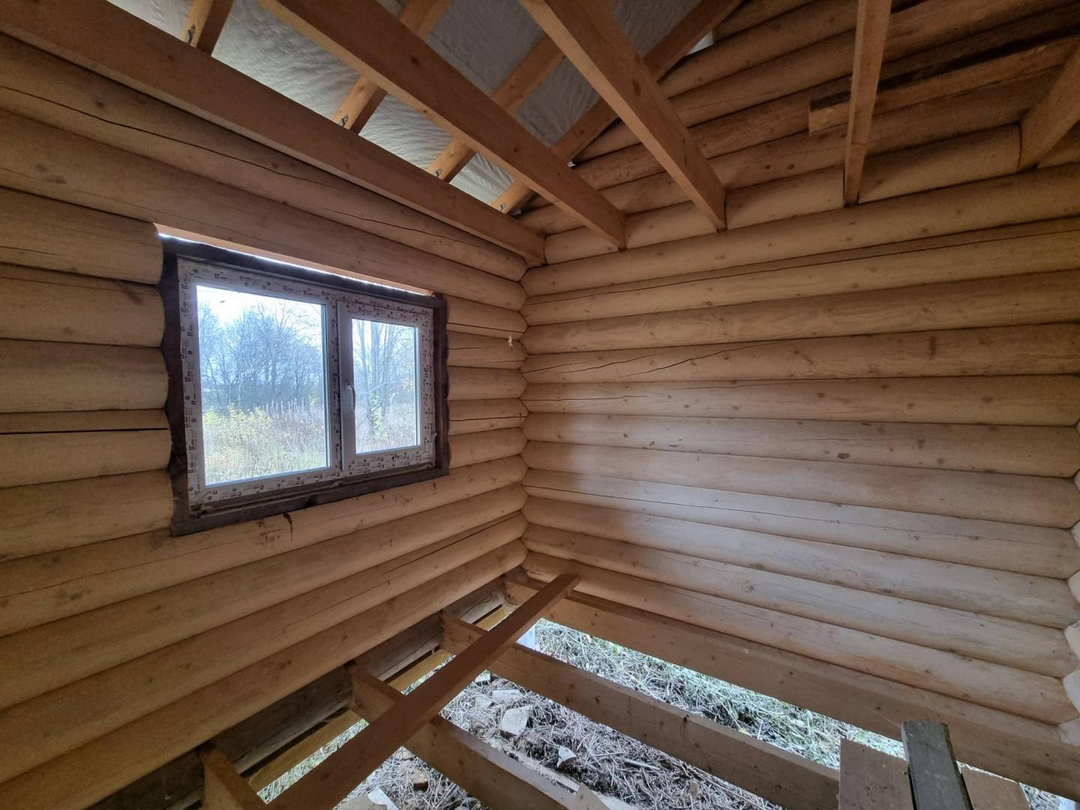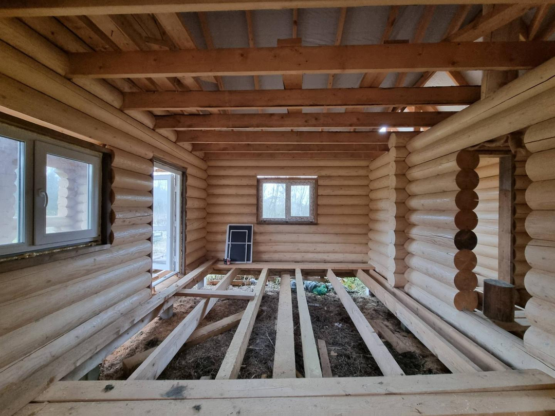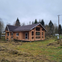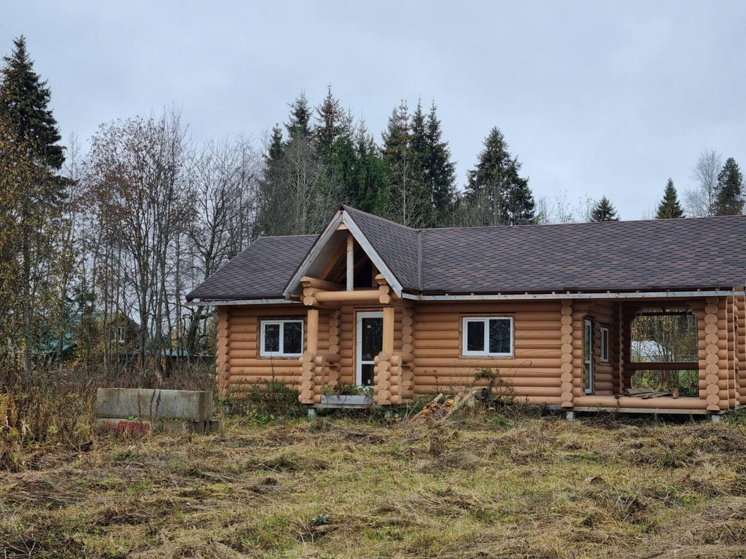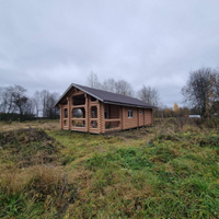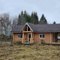 В продаже 1-этажный дом (ОНС) из 26-го оцилиндрованного бревна, покрашен хорошей краской на масляной основе (дерево дышит) снаружи и внутри, крыша из гибкой черепицы (Docke), фундамент – ж/б сваи (больше 20 шт.), окна и двери – ПВХ.