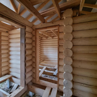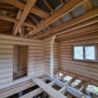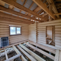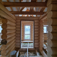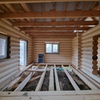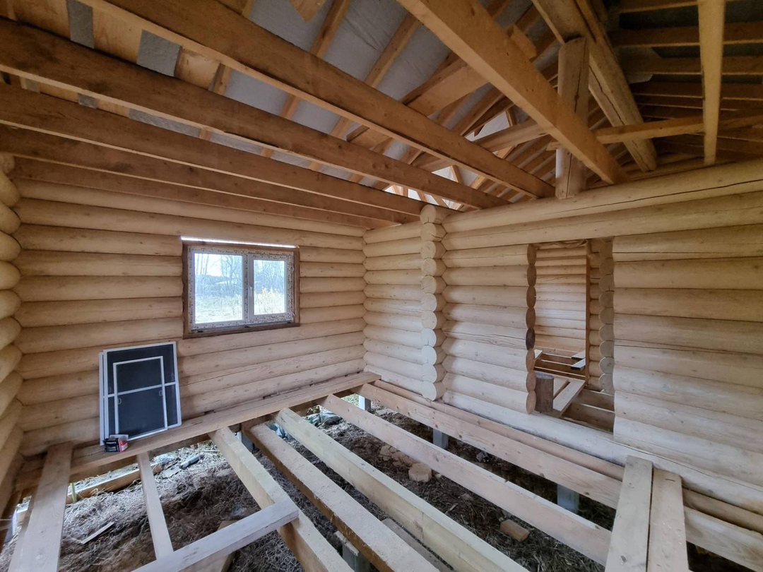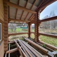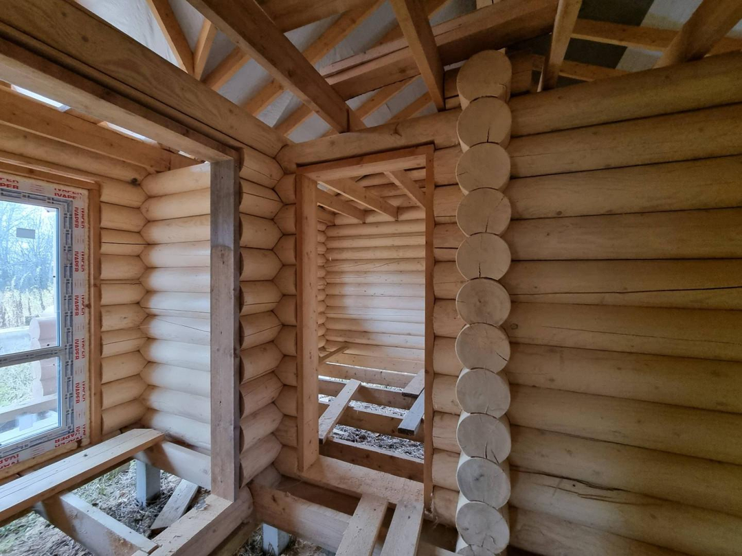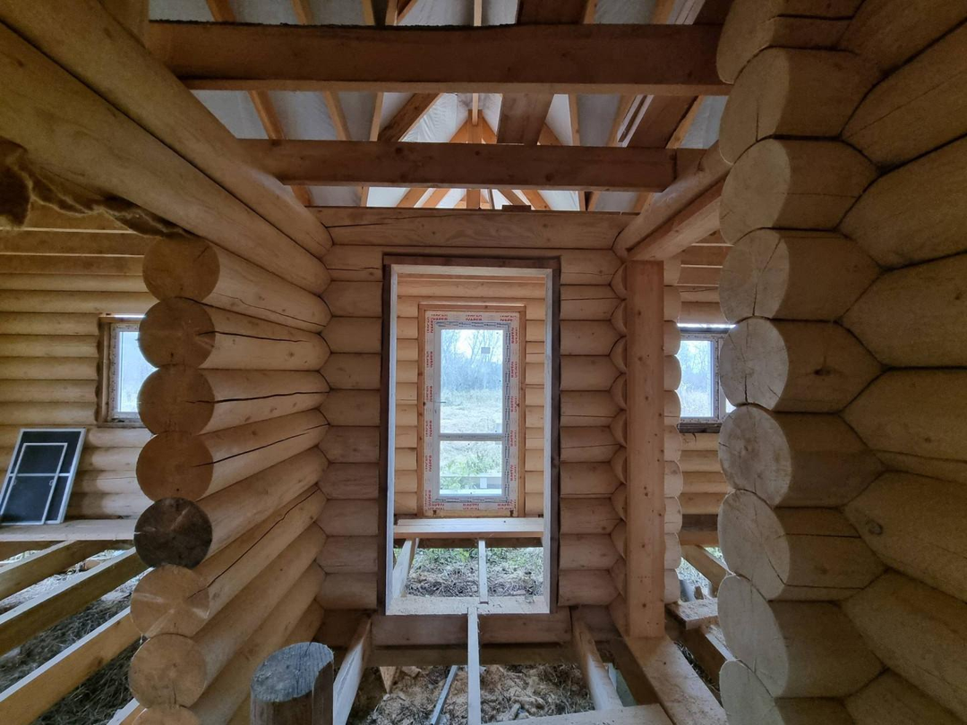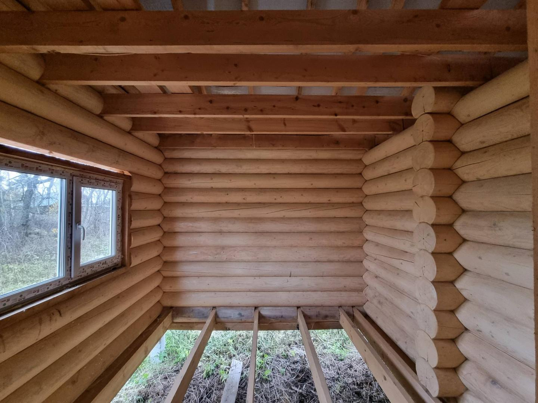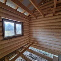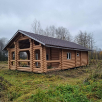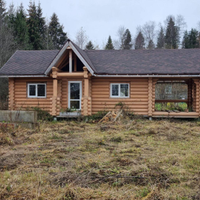 В продаже 1-этажный дом (ОНС) из 26-го оцилиндрованного бревна, покрашен хорошей краской на масляной основе (дерево дышит) снаружи и внутри, крыша из гибкой черепицы (Docke), фундамент – ж/б сваи (больше 20 шт.), окна и двери – ПВХ.