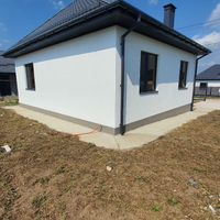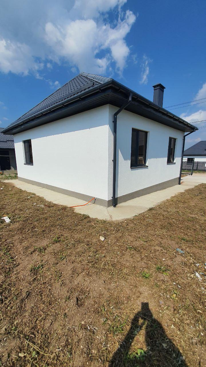 Дом отделан штукатуркой кораед, крыльцо плитка, снаружи дома есть выводы под полив водой, машиноместо, дорожка от калитки и отмостка забетонированы. Кровля четырехскатная металлочерепица. Индивидуальная скважина от 80 метров глубиной и свой септик на 6,5 кубов, дренажный, вам не придется его постоянно выкачивать. По фасадной части дома установлен забор с евроштакетником, откатными воротами и калиткой на ленточном фундаменте. По периметру забора нет, но его можно заказать.