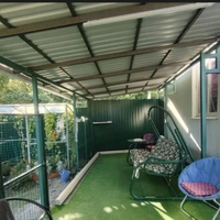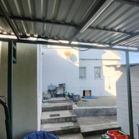 Уютный двор с навесом и песочницей для ребенка. Двор забетонирован.