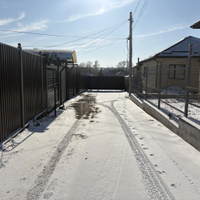 Во дворе имеется асфальтовая площадка, покрытая поликарбонатом, обеспечивающая защиту от непогоды. За домом оборудован сухой подвал для хранения консервированных продуктов. Под навесом предусмотрено место для парковки трёх автомобилей.