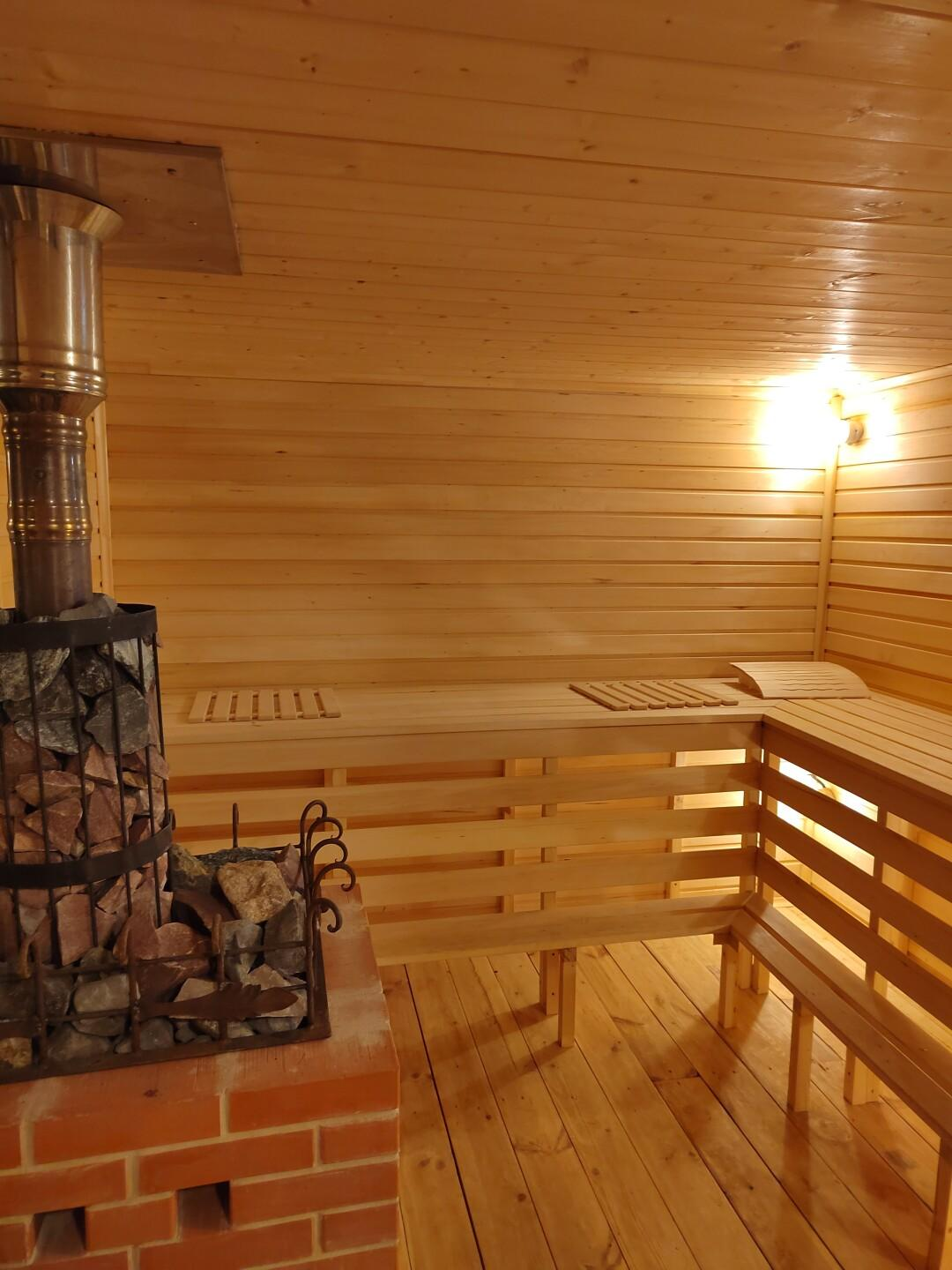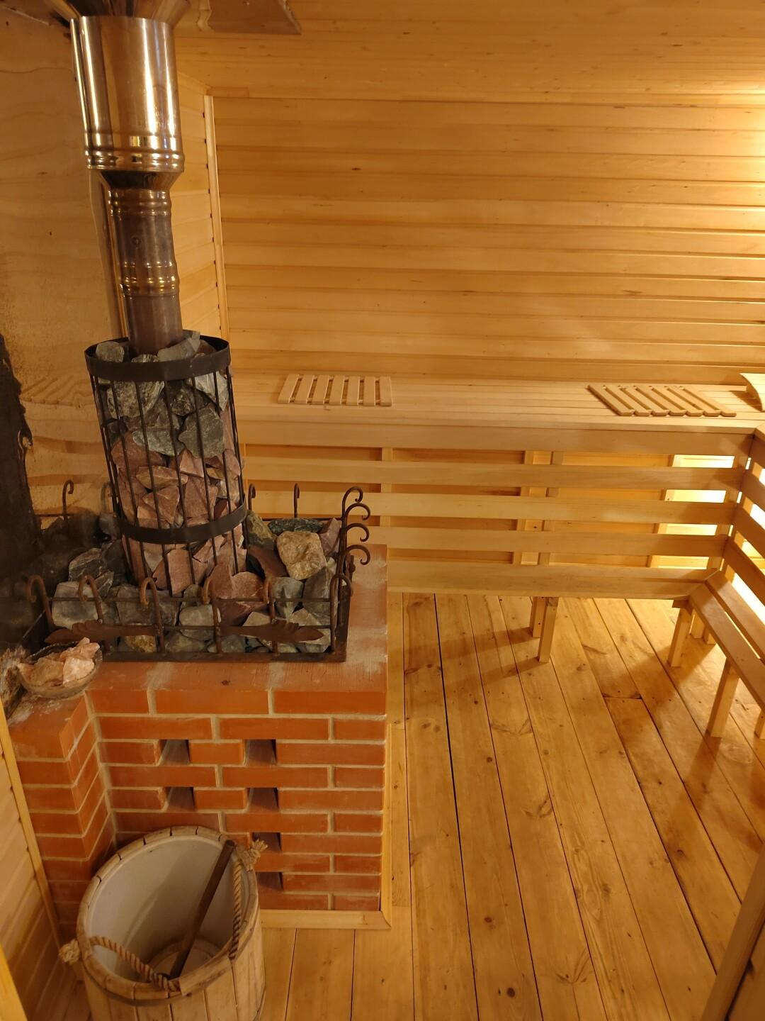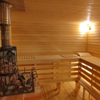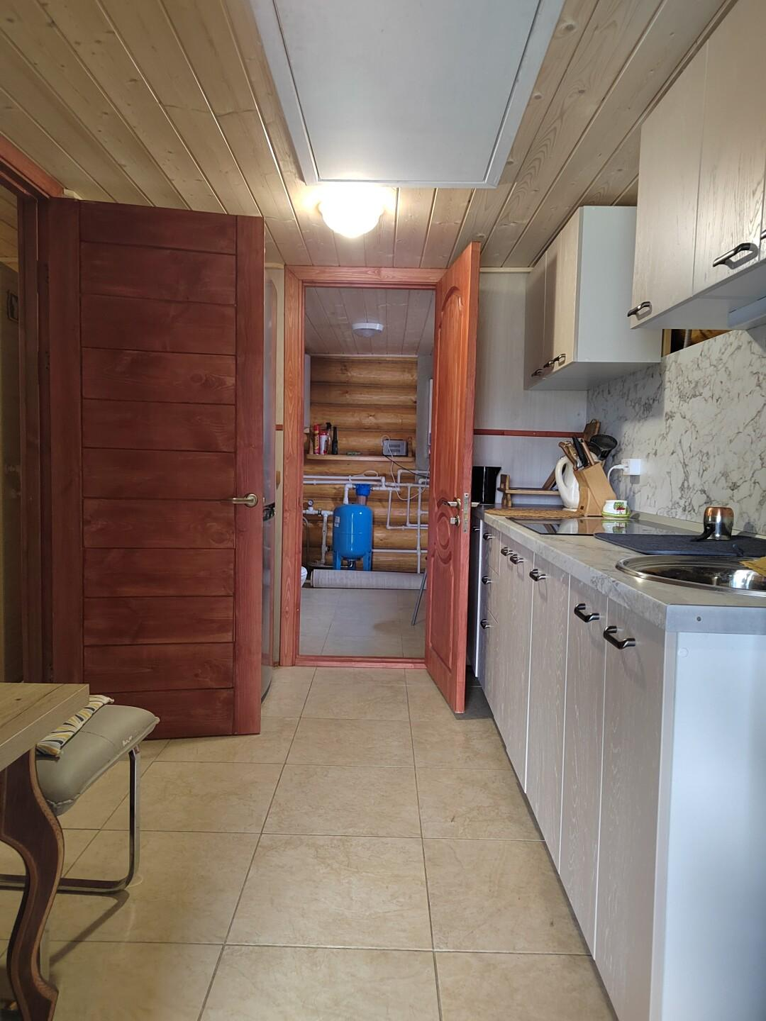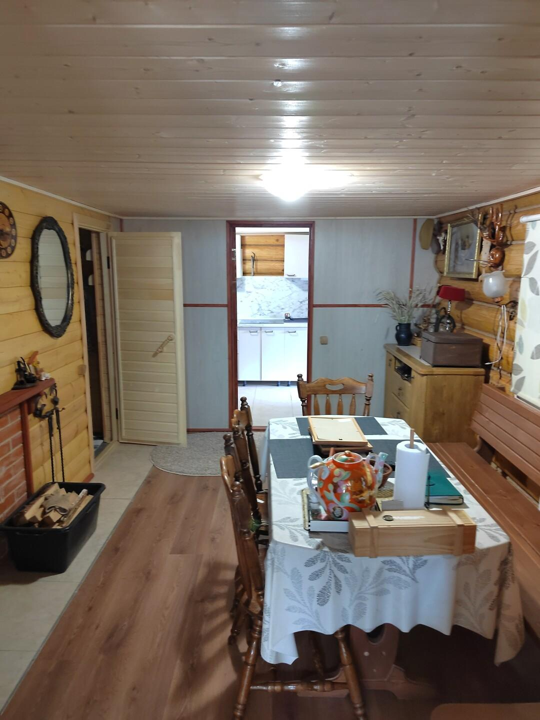 В доме две комнаты, кухня, сауна, гостиная, с/у, бойлерная, прихожая