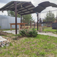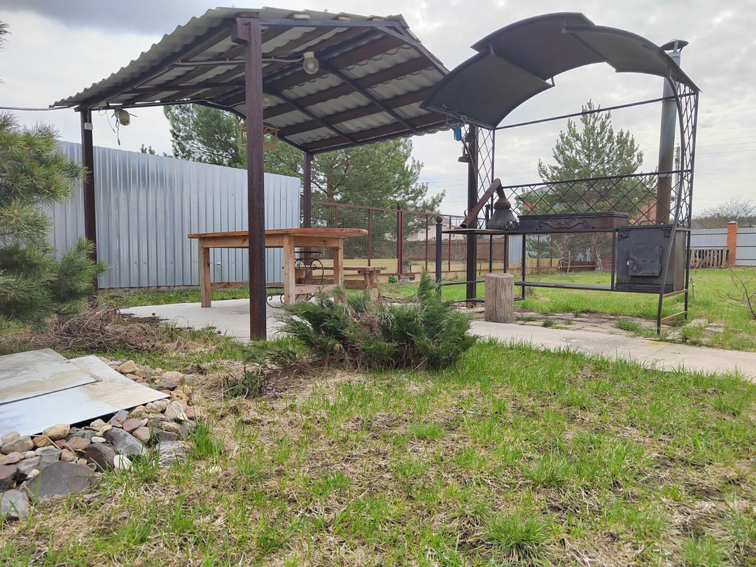 На участке есть хозблок, обустроенная мангальная зона, теплица