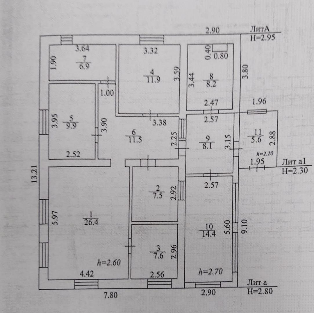 В доме 4 жилых комнаты, просторная кухня, ванная, коридор, котельная, 3 неотапливаемых веранды.
