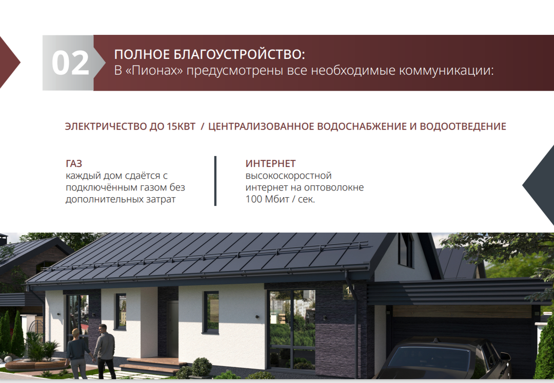 Дом построен в коттеджном поселке "ПИОНЫ" по самым современным требованиям и стандартам: