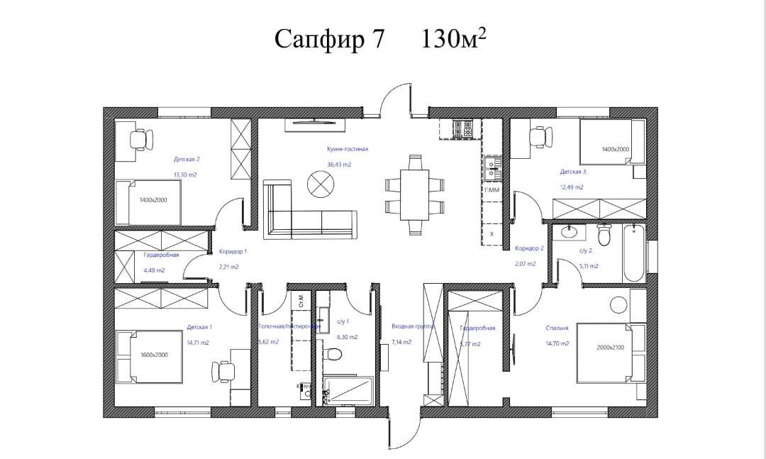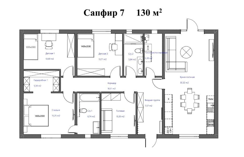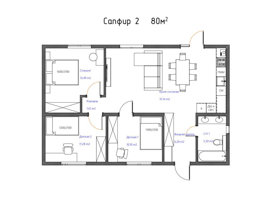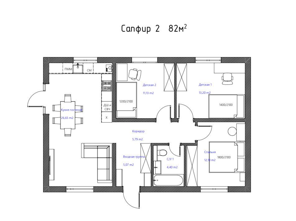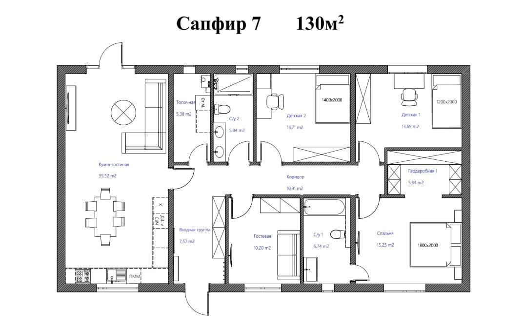 Жилые дома представлены в проекте "Сапфир-1" (70 кв.м), "Сапфир-2" (80 кв), "Сапфир-3 (113,5 кв.м.), "Сапфир-5" (134.5 кв.м.), "Сапфир-7" (149,5 кв.м) на участках 6 соток.