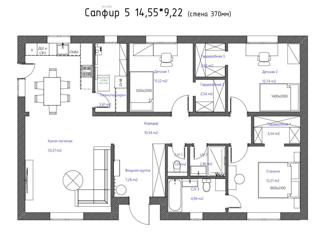 Варианты отделки: черновая, предчистовая, под ключ.