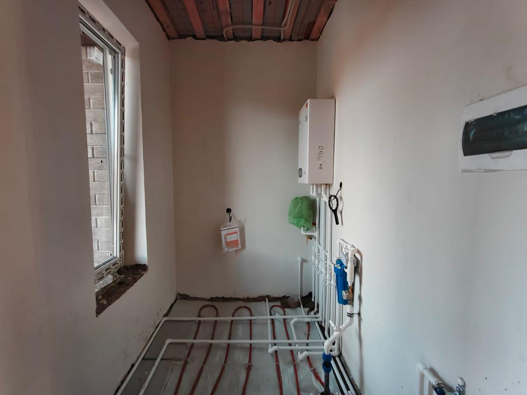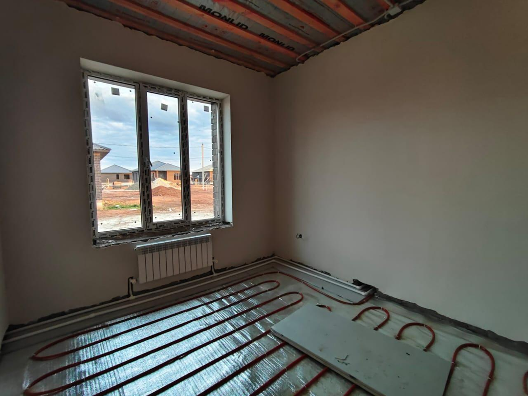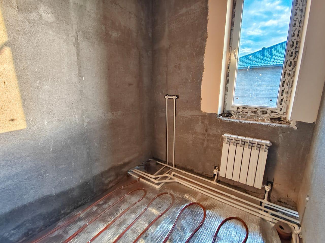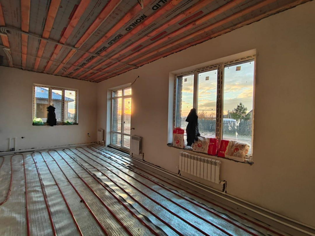 В доме выполнена предчистовая отделка: