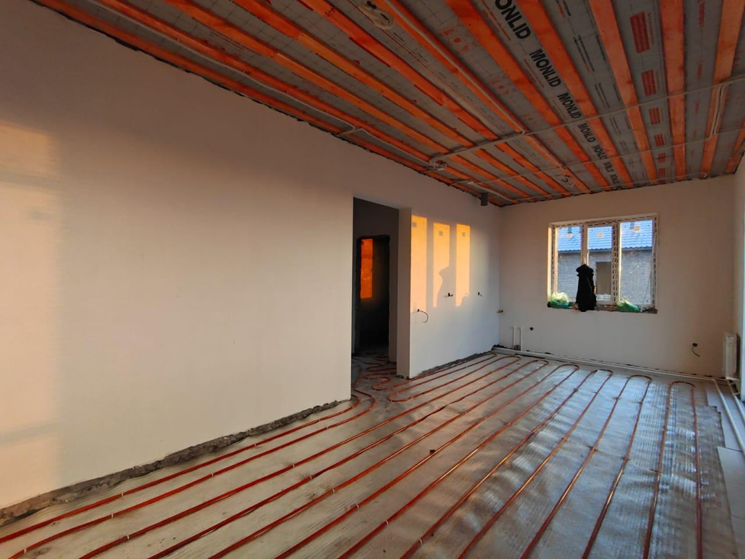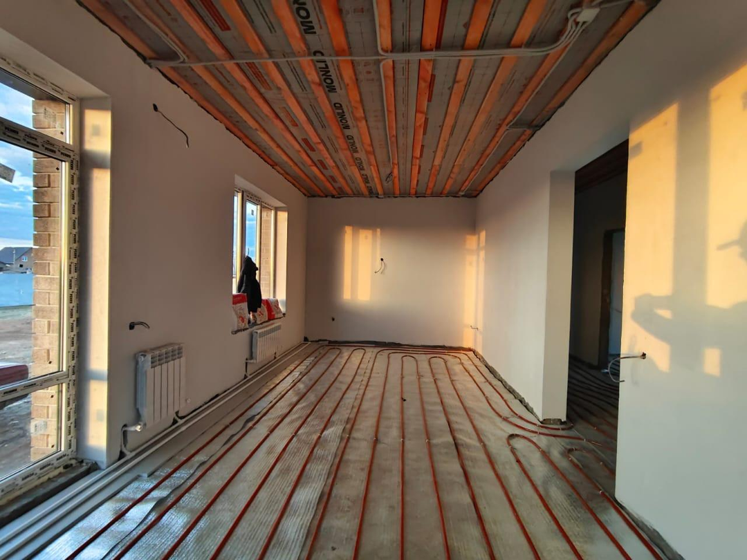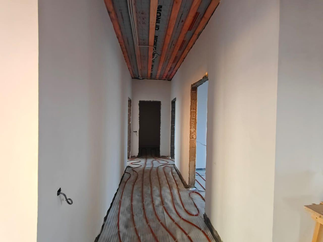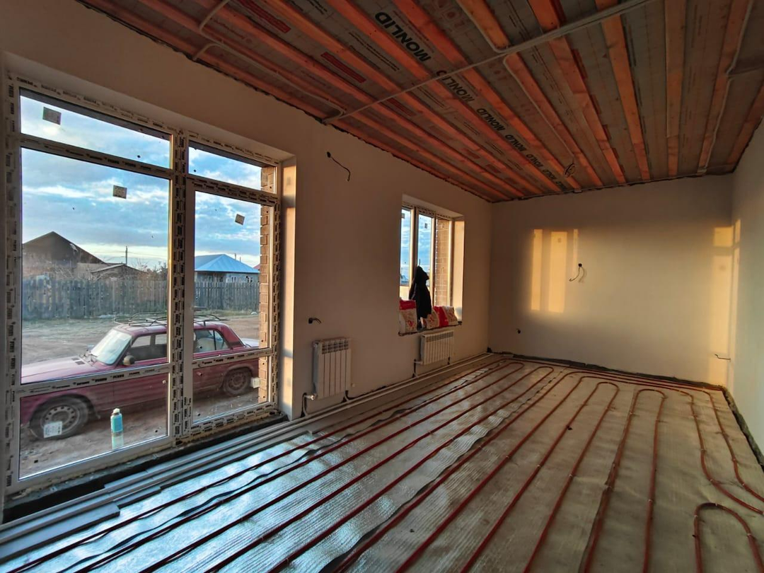 В доме выполнена предчистовая отделка: