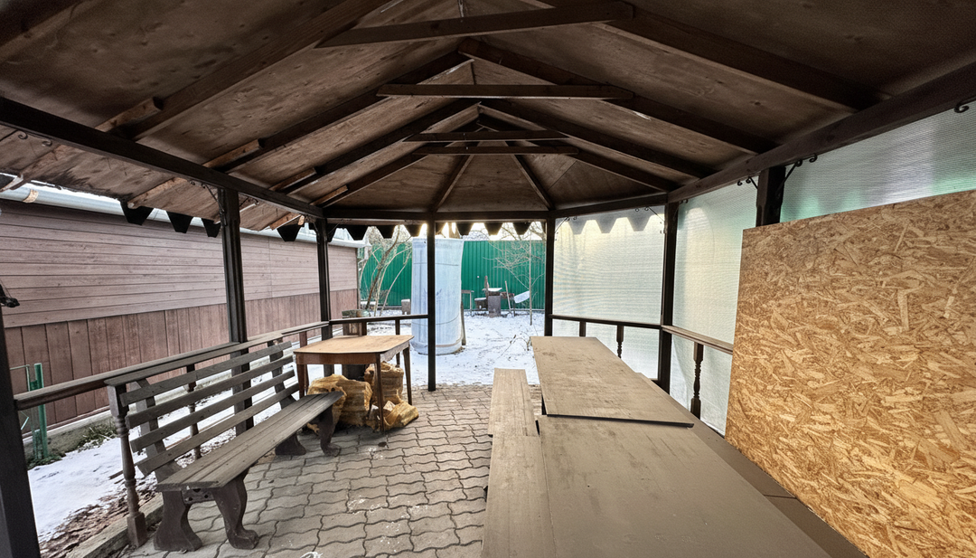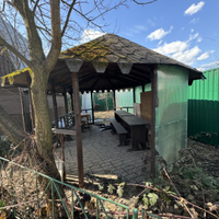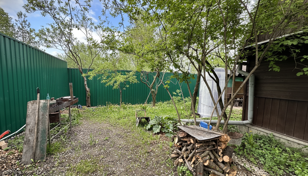 Участок обустроен для активного отдыха: здесь есть детские качели, турник и беседка-барбекю с мангалом, где вы сможете наслаждаться семейными вечерами на свежем воздухе. Любители садоводства оценят разнообразие плодовых деревьев: яблони, груши, шелковица, виноград шести сортов, сливы трех сортов, а также смородина, крыжовник, малина и ежевика. Для полива предусмотрен центральный водопровод с емкостью для теплой воды. Территория ограждена забором из профлиста, что обеспечит безопасность и уединение.