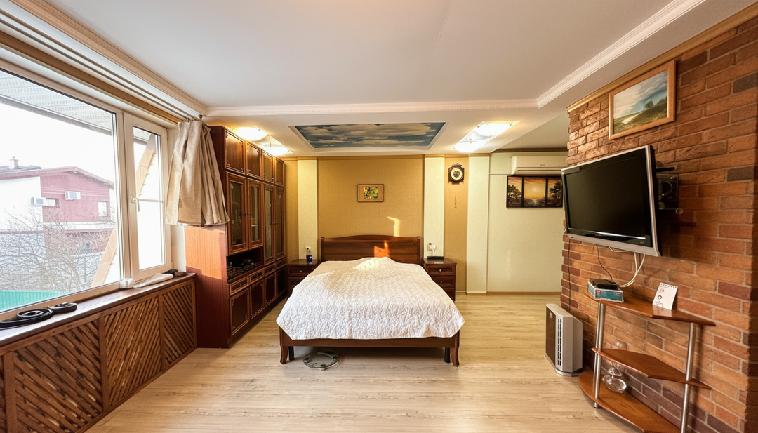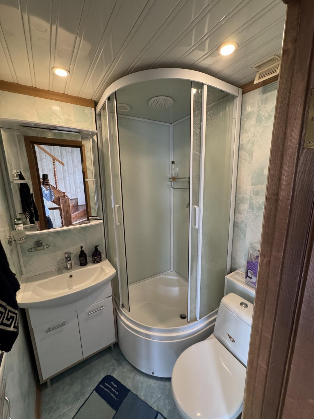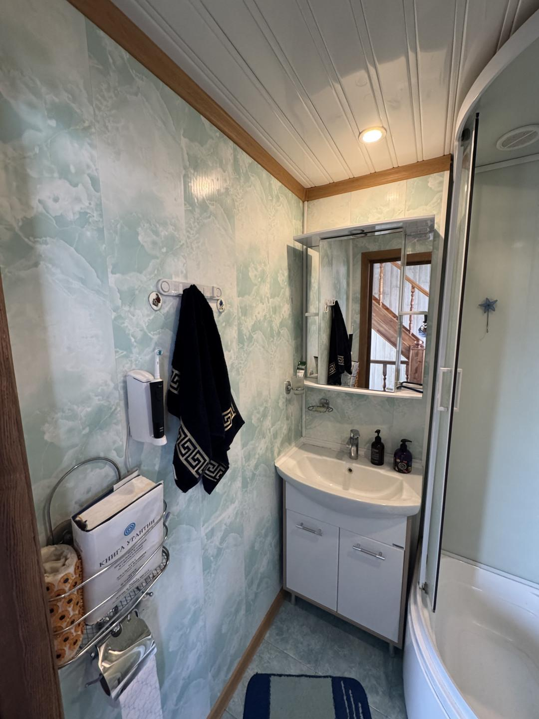 Внутри дома вас ждет атмосфера уюта: русская печь, камин, электрокотел для отопления, ванная и душевая кабина, два туалета, кондиционер. В доме остается вся необходимая мебель, стиральная машина, а система фильтрации "Осмос" с повышающим насосом гарантирует чистую воду.