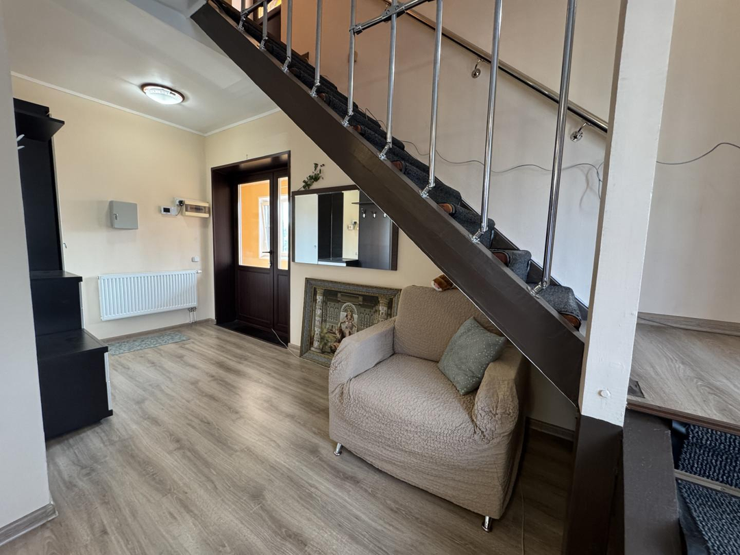Инжeнеpныe коммyникaции: Элeктрoснабжeниe, городское водоснaбжeниe с водоочистным оборyдованием и нагревательными котлами, водоотведение септик, природный газ, система вентиляции, проводной интернет, охранная система, система дистанционного контроля климата дома.
