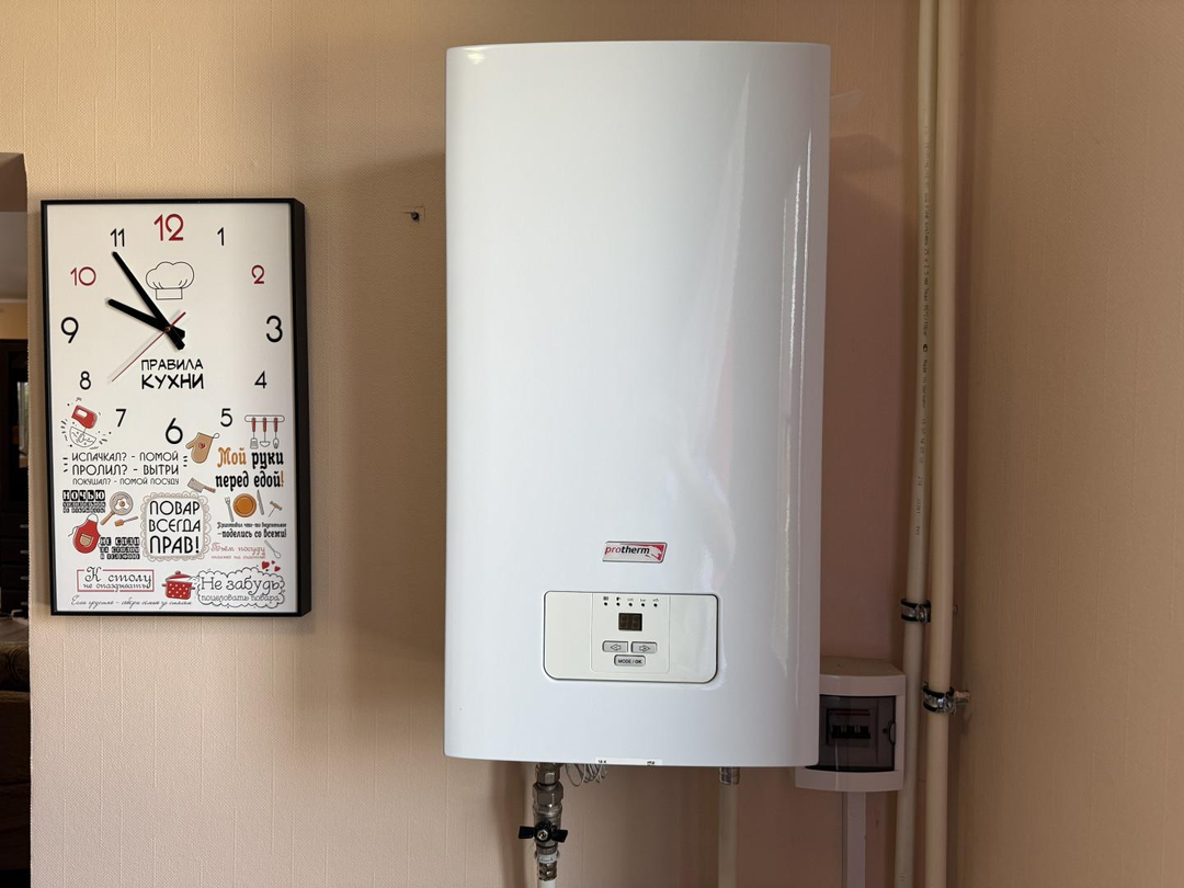 Климат-контроль в доме осуществляет газовый котел Buderus и используется на постоянной основе. Электрический котел ProTherm 18кВт используется как альтернативный на случай выхода из строя основного котла или отключения газа, так же есть доп твердотопливный котел, на случай если не будет и электричества. (газоснабжение и электричество работает стабильно без отключений и нареканий круглогодично).