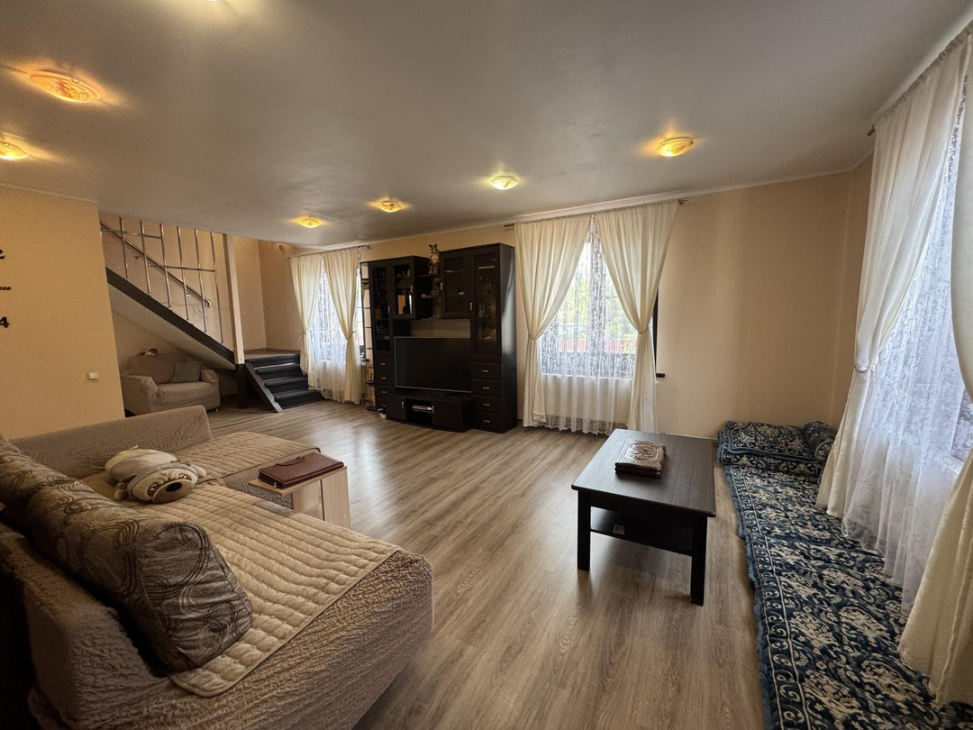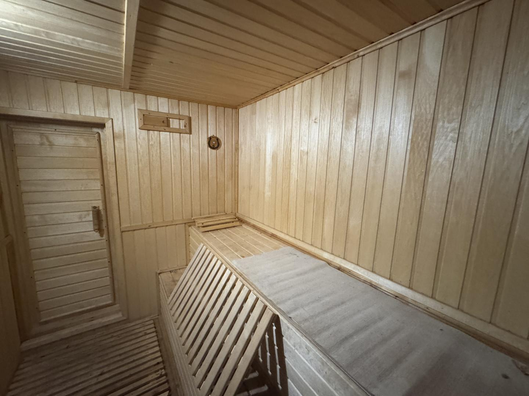 На участке расположены:2-х этажный коттедж.2-х этажная баня.Хозблок кирпичный.Хозблок деревянный.Вспомогательное строение.