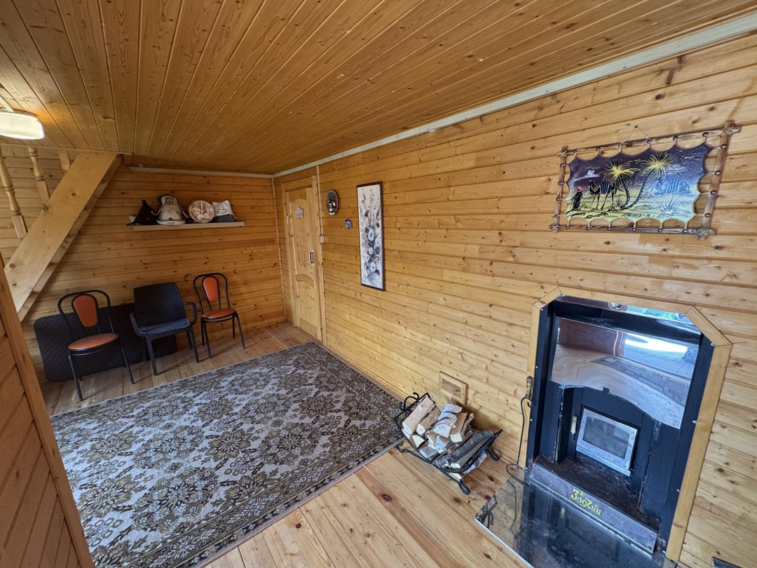 На территории участка есть баня со спальной комнатой на втором этаже. Рядом с баней мангальная зона.