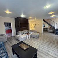 Первый этаж: прихожая-пристройка с зоной для утреннего кофе, прихожая, просторная гостиная, кухня, коридор, санузел с душем и ванной, туалет с биде.