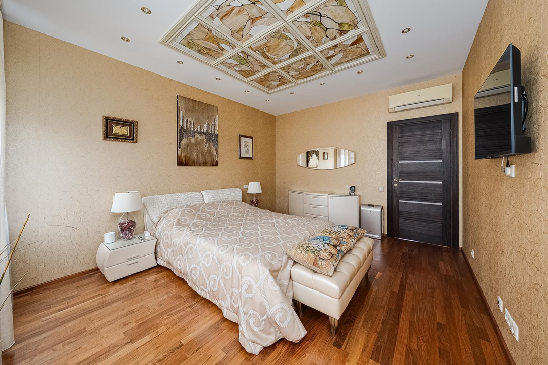 2 этаж: мастер-спальня с огромной кроватью и с гардеробной + детская + спальня/кабинет + большой совмещенный санузел и хоз. Блок.
