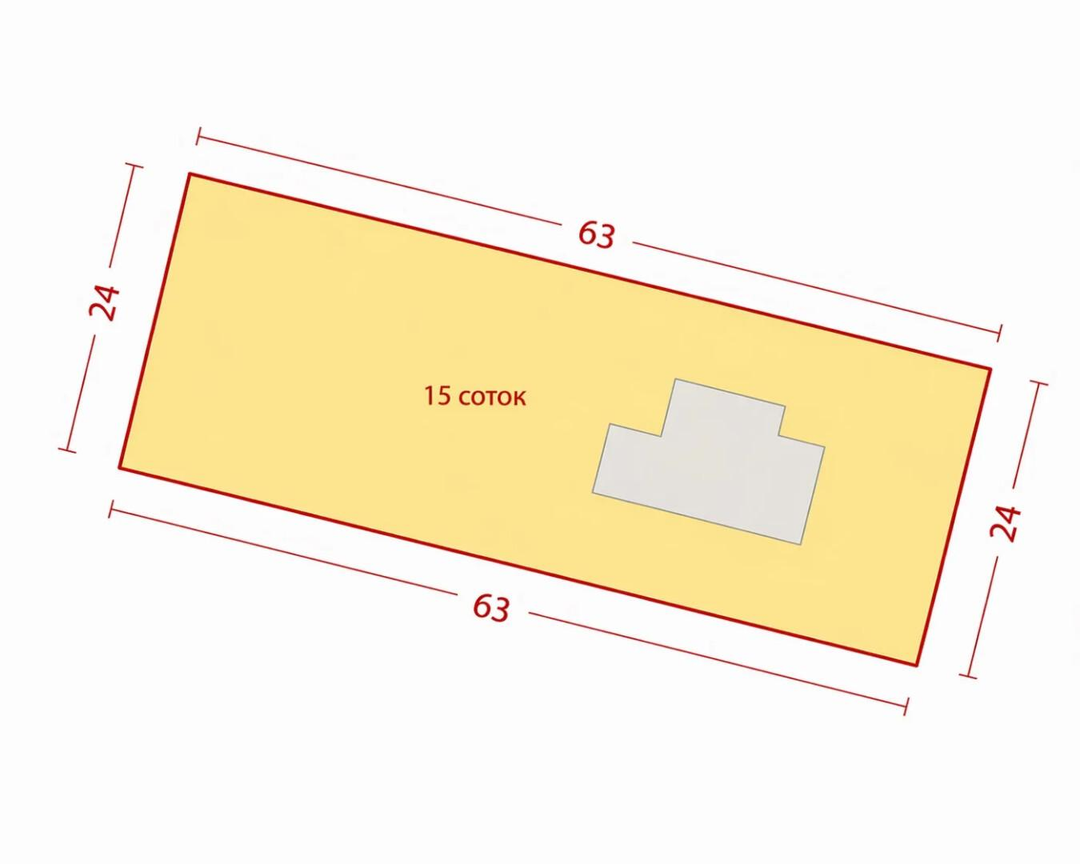 Участок: 63×24 м — вытянутой формы, удобен для разделения или застройки