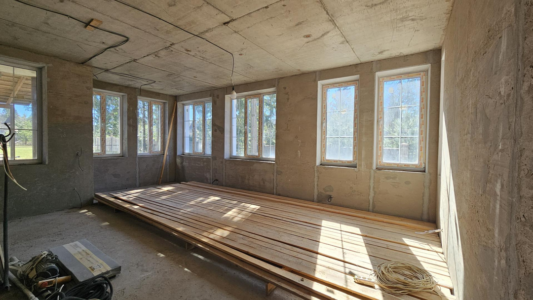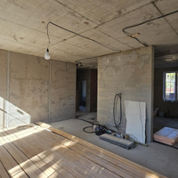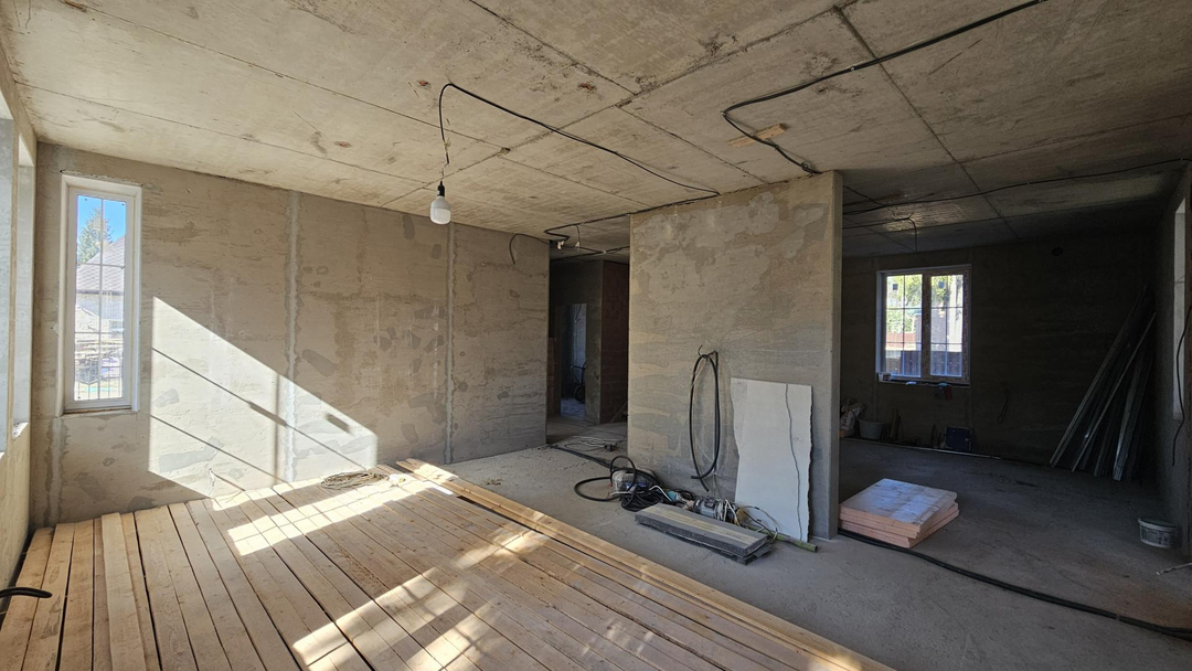 1ый этаж: кухня 18 кв.м, зал 32 кв.м с выходом на террасу, спальня, санузел, котельная с торца дома, просторная прихожая;