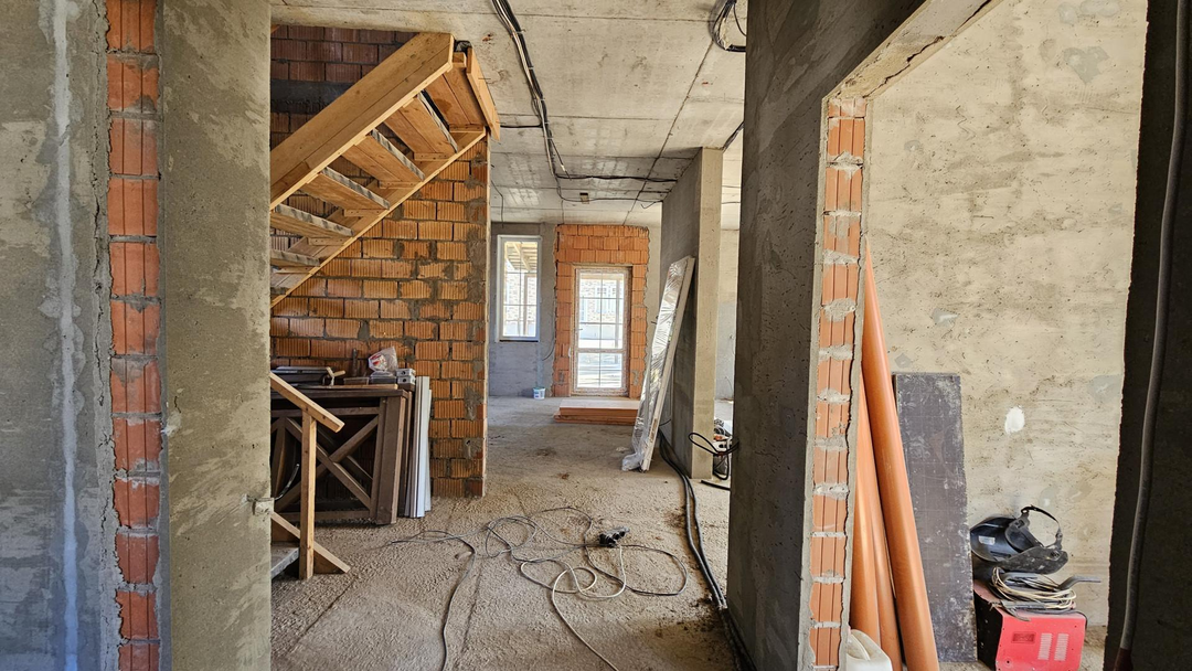 Дом 2019 года постройки из кирпича, с железобетонными перекрытиями, фундамент ростверк с монолитной плитой. Окна трехкамерные Rehau. Облицовка утеплитель Пеноплекс, камень Eurocam. Кровля - мягкая черепица.
