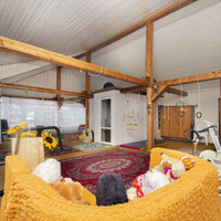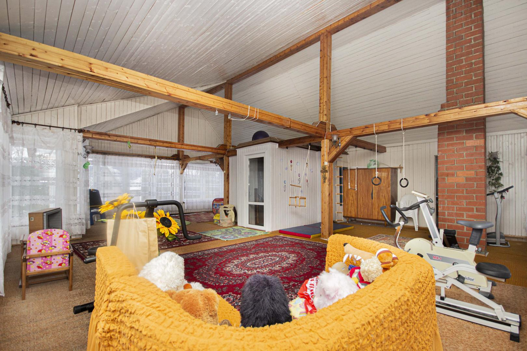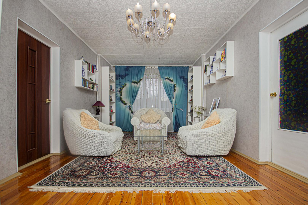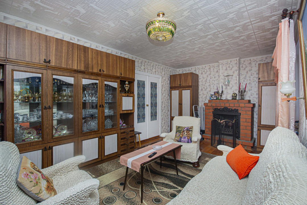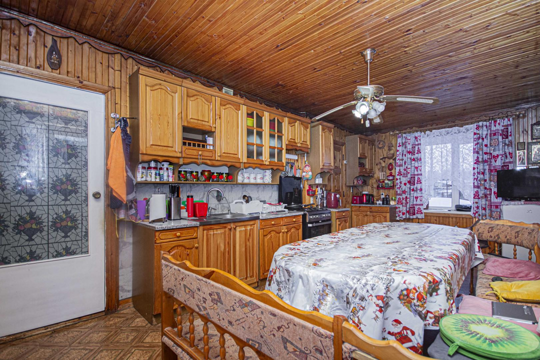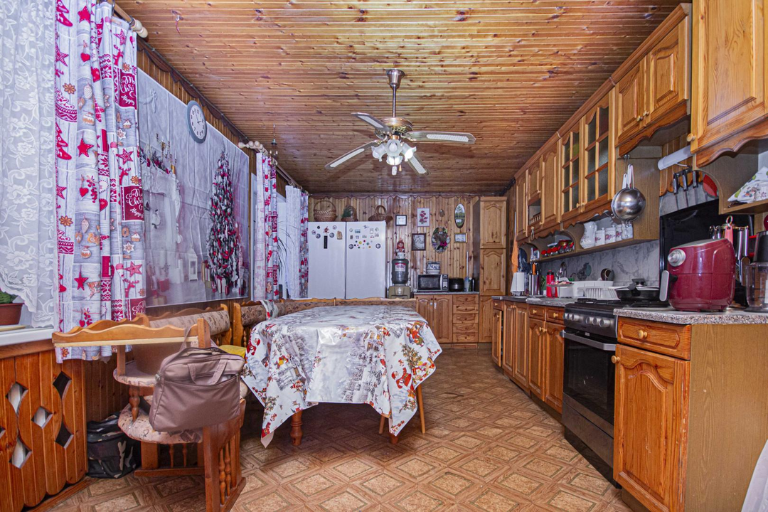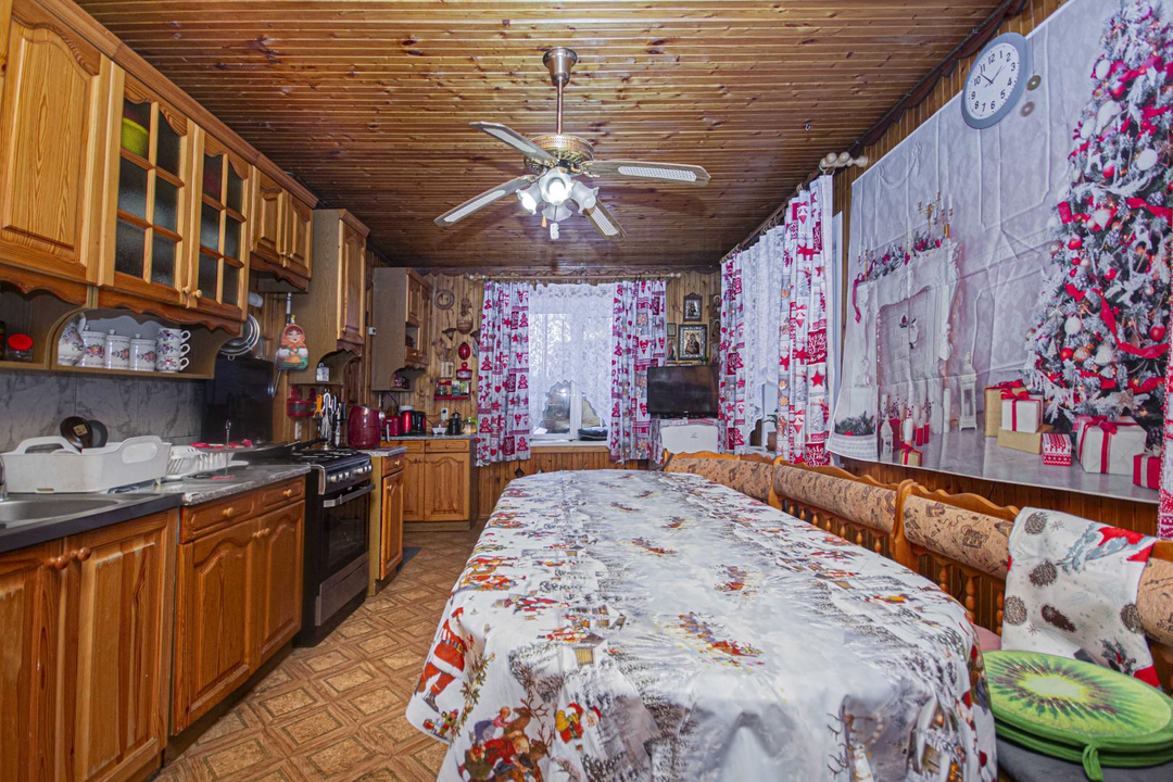 После продажи в доме остается мебель, кухонный гарнитур и техника частично.
