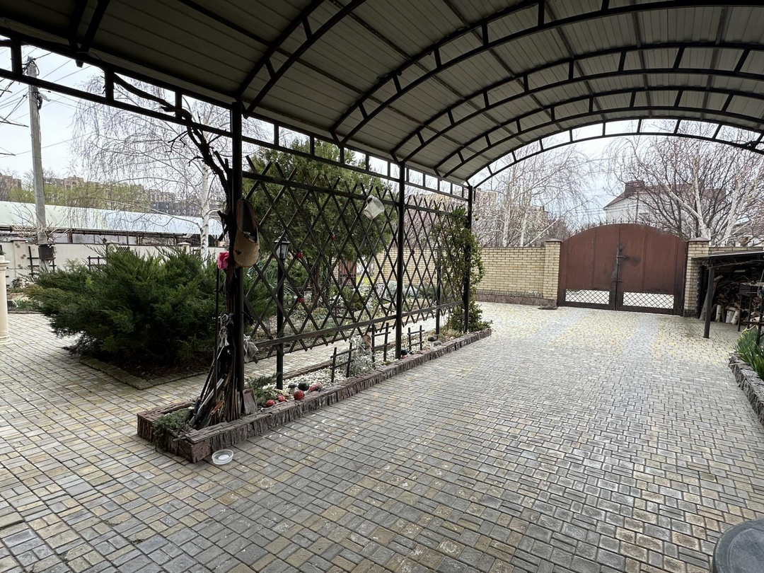 На территории предусмотрена крытая уличная парковка из качественного металла, а также просторный крытый гараж. Из гаража есть прямой выход на летнюю кухню с поднимающимися воротами, что особенно удобно в теплое время года, и на крытую кухню, где вы сможете воплотить любые кулинарные фантазии.
