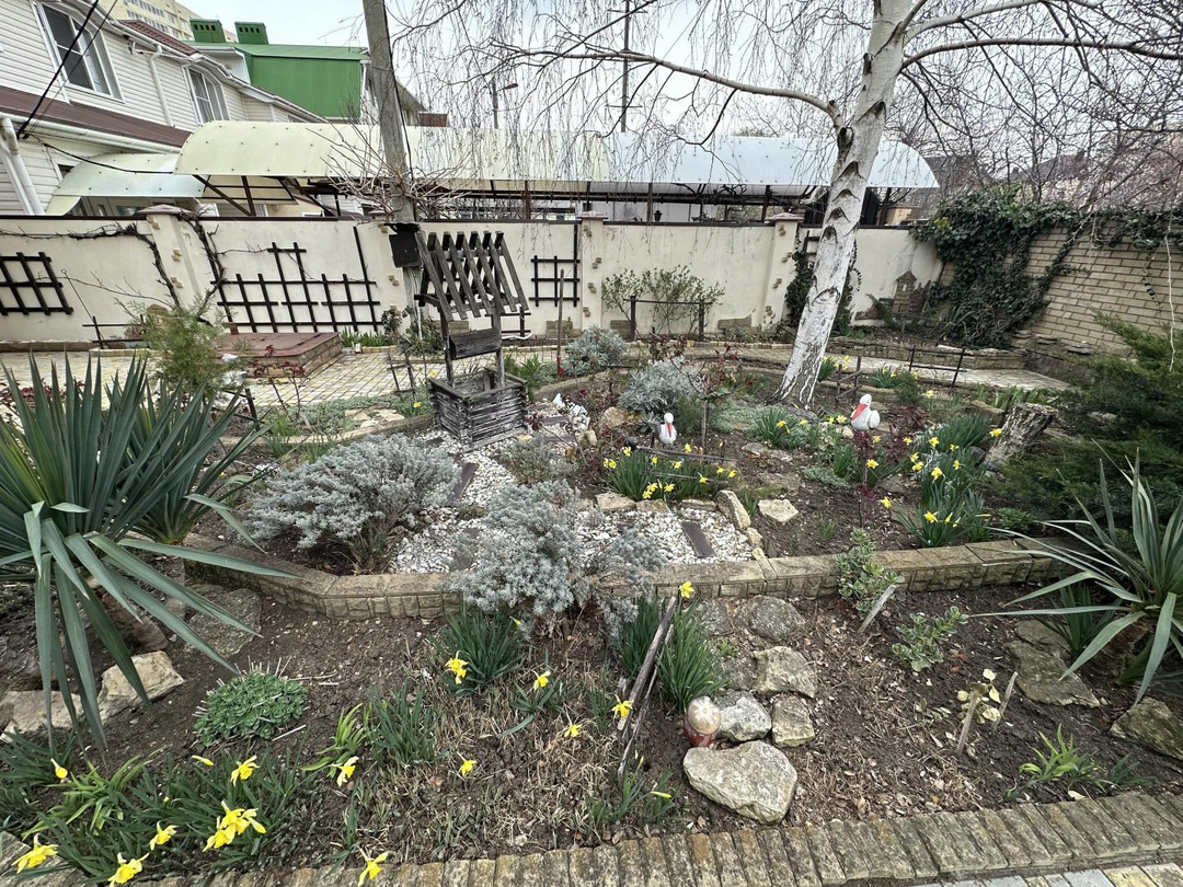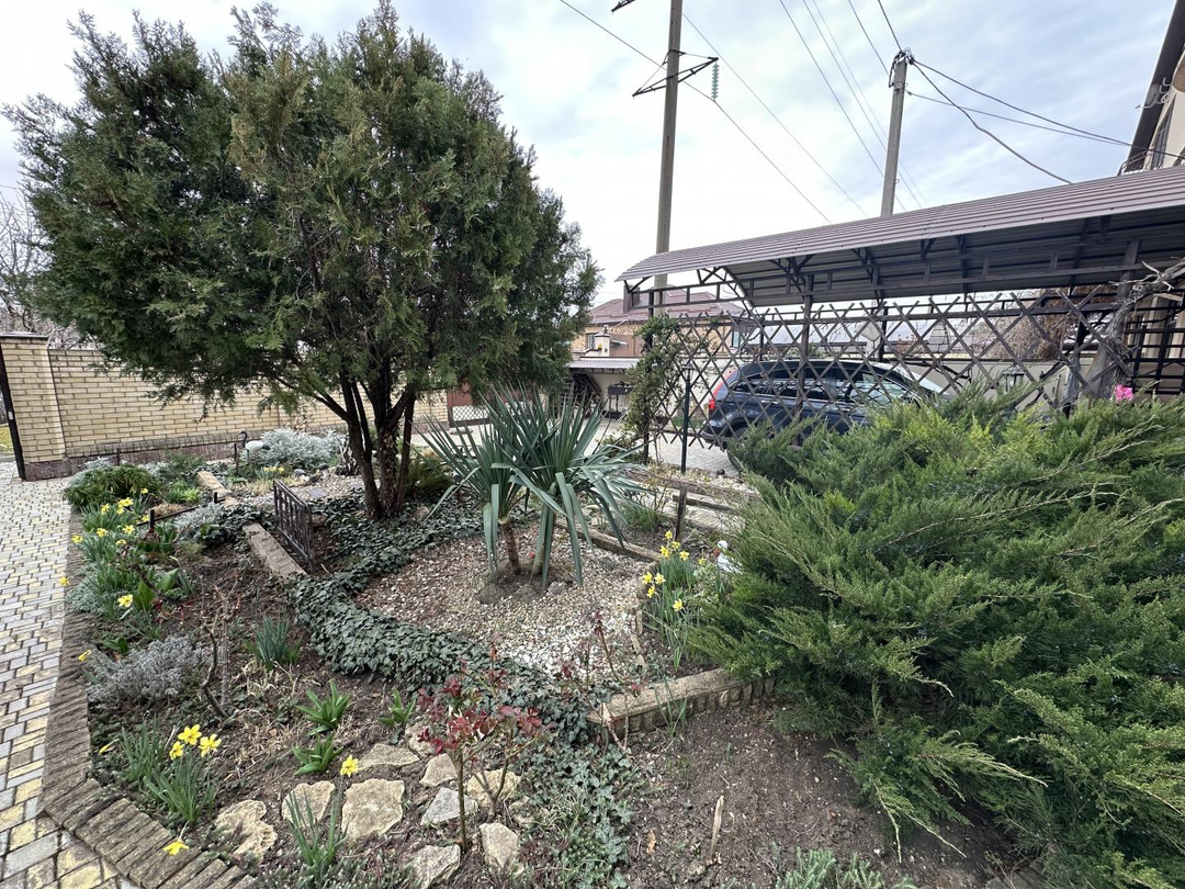 Уже у входа вас встретит настоящий цветущий сад с множеством молодых, но уже плодоносящих деревьев: вишня, абрикос, яблоня, грецкий орех, а также кусты черной смородины,а это значит что вы и ваши близкие будут обеспечены практически все лето сочными и свежими ягодами и фруктами не отходя от дома. На участке выполнен не просто ландшафтный дизайн, а целое произведение искусства с разнообразными деревьями и кустарниками. На территории есть собственная скважина и организованная система полива, дополненная красивыми декоративными элементами.