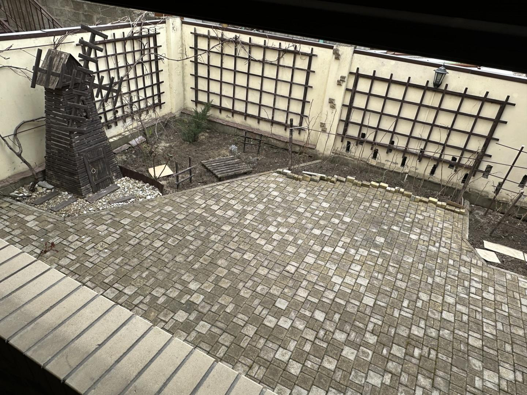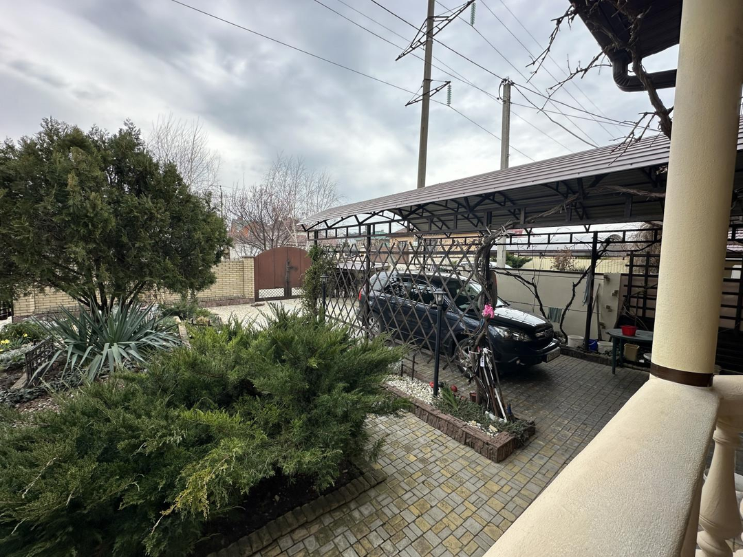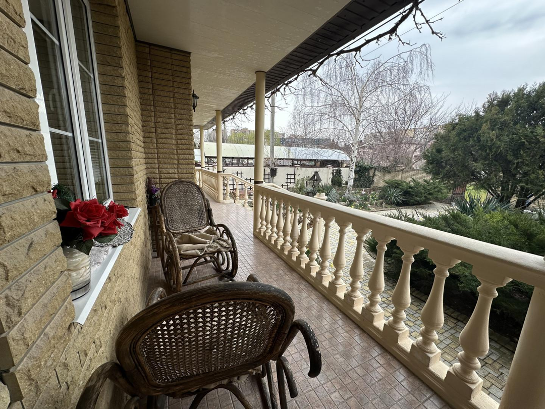 Перед домом расположена уютная терраса с ротанговой мебелью которую в летнее время окутывает виноград с шикарными плодами листья которых создают уют и прохладную тень, идеальное место для утреннего кофе. Сам дом выполнен по проекту знаменитого архитектора, с использованием исключительно качественных материалов и строгим соблюдением всех стандартов, что гарантирует его прочность и долговечность.