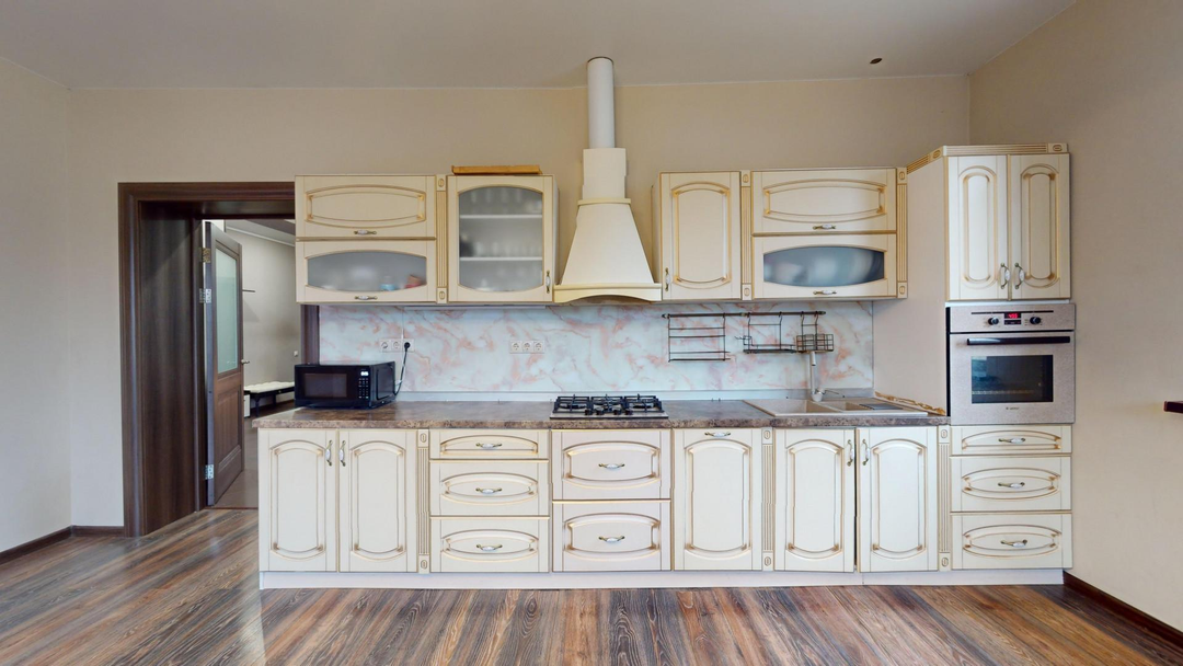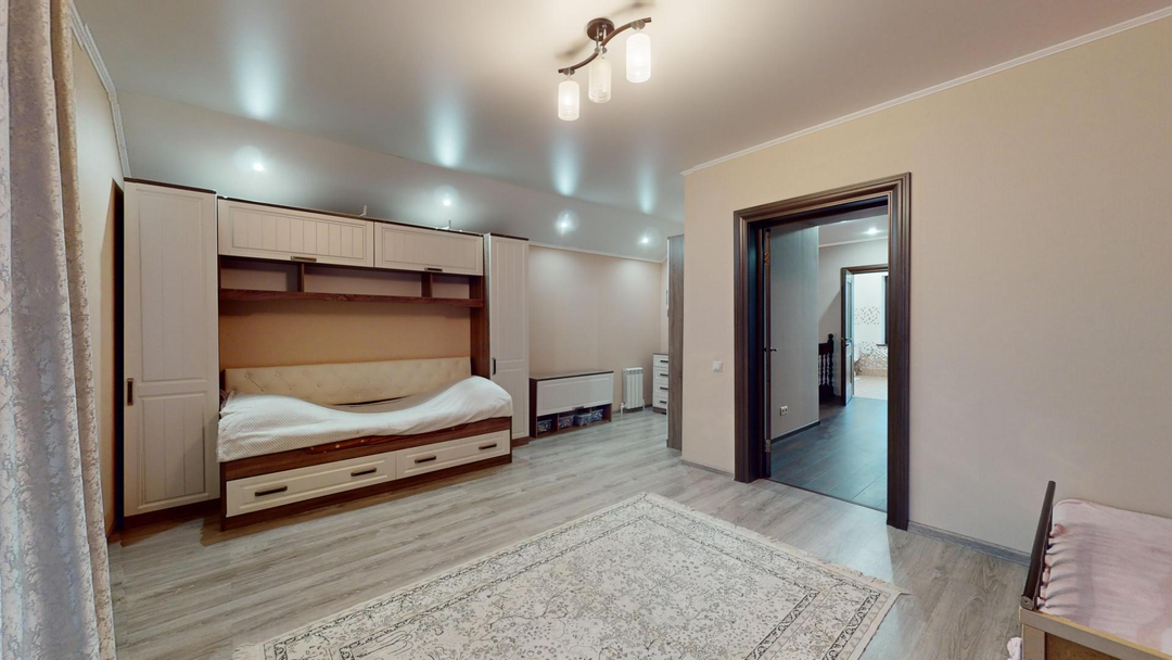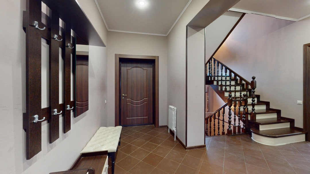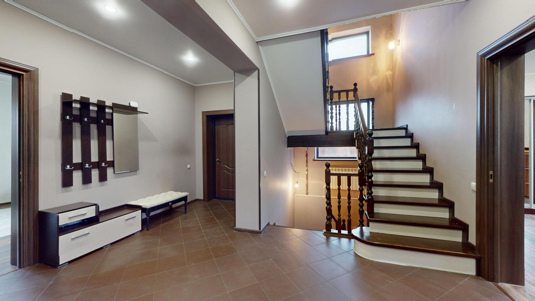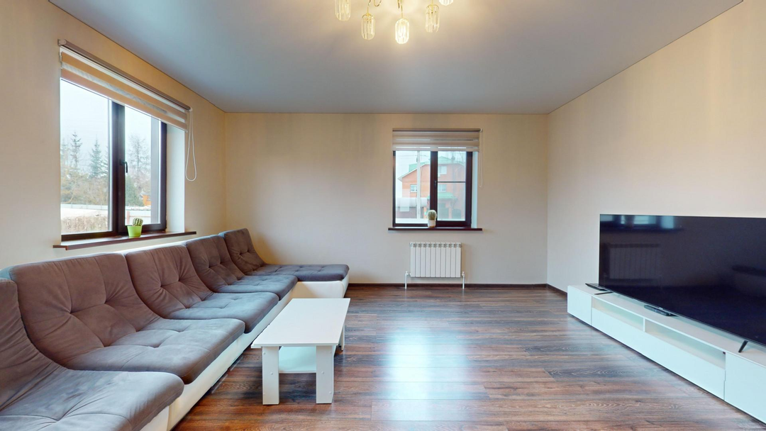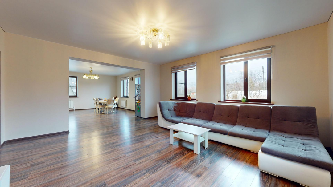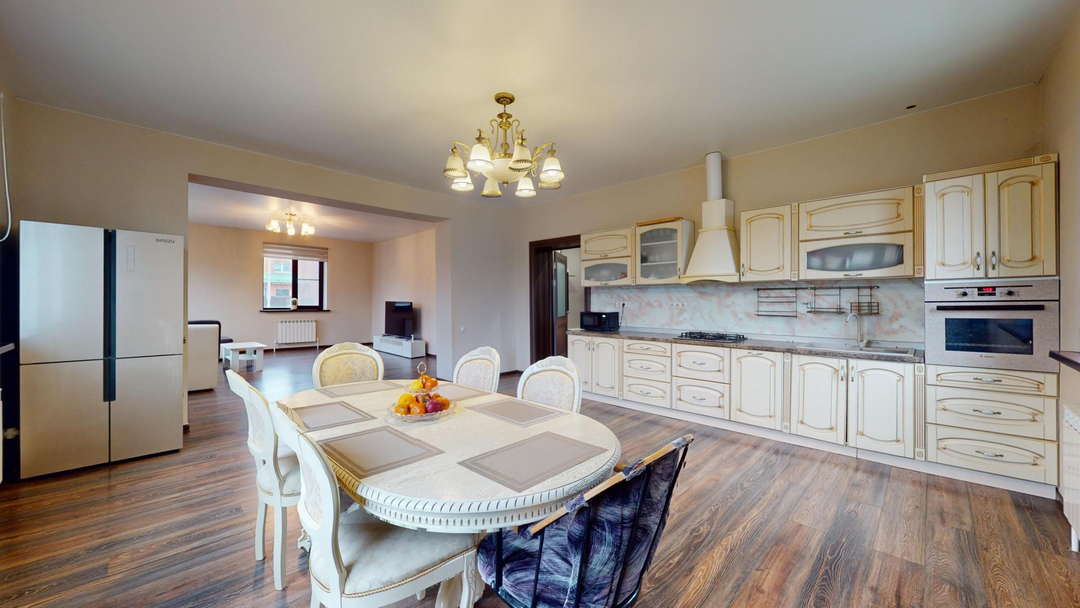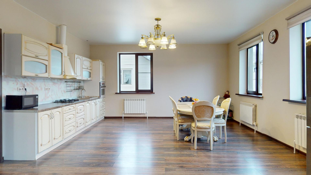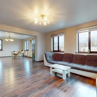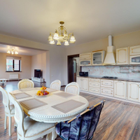 1 этаж: Кухня-столовая - 31 кв.м; Гостиная - 30,5 кв.м; Гардеробная – 19 кв.м; Детская игровая комната - 14 кв.м; Санузел - 5 кв.м; Холл - 20 кв.м.