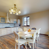 1 этаж: Кухня-столовая - 31 кв.м; Гостиная - 30,5 кв.м; Гардеробная – 19 кв.м; Детская игровая комната - 14 кв.м; Санузел - 5 кв.м; Холл - 20 кв.м.