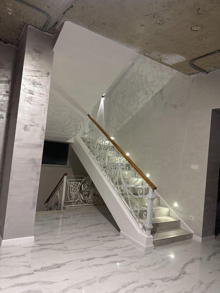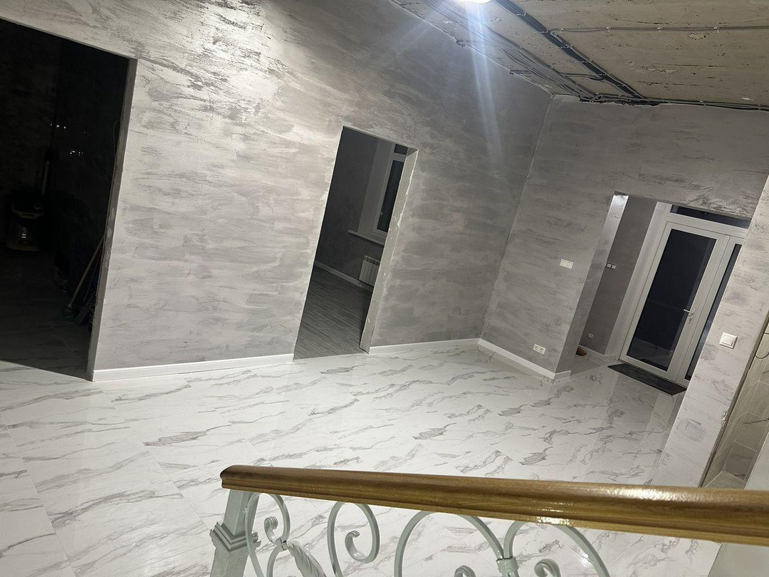 В доме 2 входа,5 санузлов, 5 спален, большая кухня-гостиная -50м2, с выходом на террасу, установлена сплит система.По всему периметру первого этажа теплый пол, теплый пол в санузлах на втором этаже.