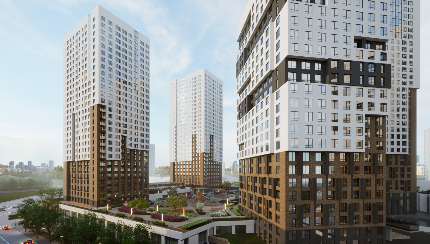 Архитектурная концепция комплекса сочетает современные тенденции и функциональность. Здания построены по монолитной технологии, что обеспечивает их надежность и долговечность. Панорамные окна наполняют квартиры естественным светом и открывают живописные виды на город. Квартиры предлагаются с разными планировками: студии, однокомнатные квартиры, а также просторные двухкомнатные варианты для семей. Все квартиры сдаются с качественной отделкой, что позволяет заселяться сразу после покупки без дополнительных затрат на ремонт.