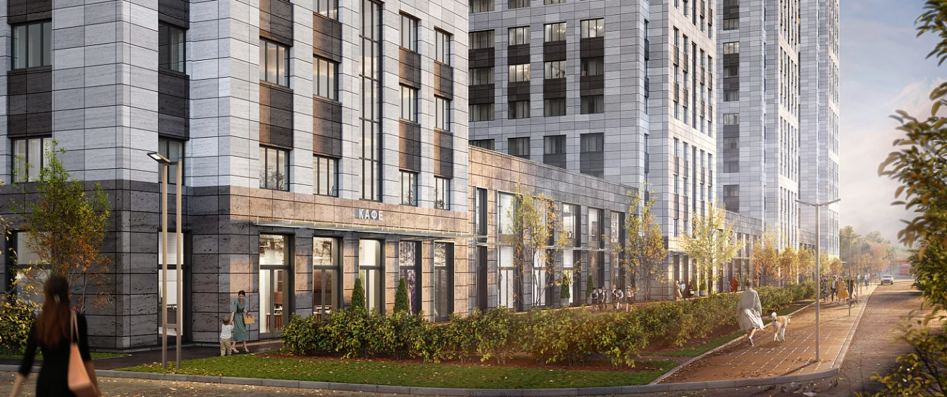 Квартал отличается продуманными особенностями: корпуса соединены двухэтажной галереей с коммерческими помещениями на первых этажах — магазинами, кафе и сервисами в шаговой доступности. Двор закрытый, без машин, с благоустройством в скандинавском стиле: детские и спортивные площадки, зоны отдыха на мягком покрытии, под надежной охраной с видеонаблюдением. Двухуровневый подземный паркинг на 628 машиномест дополнен гостевыми стоянками и кладовыми.