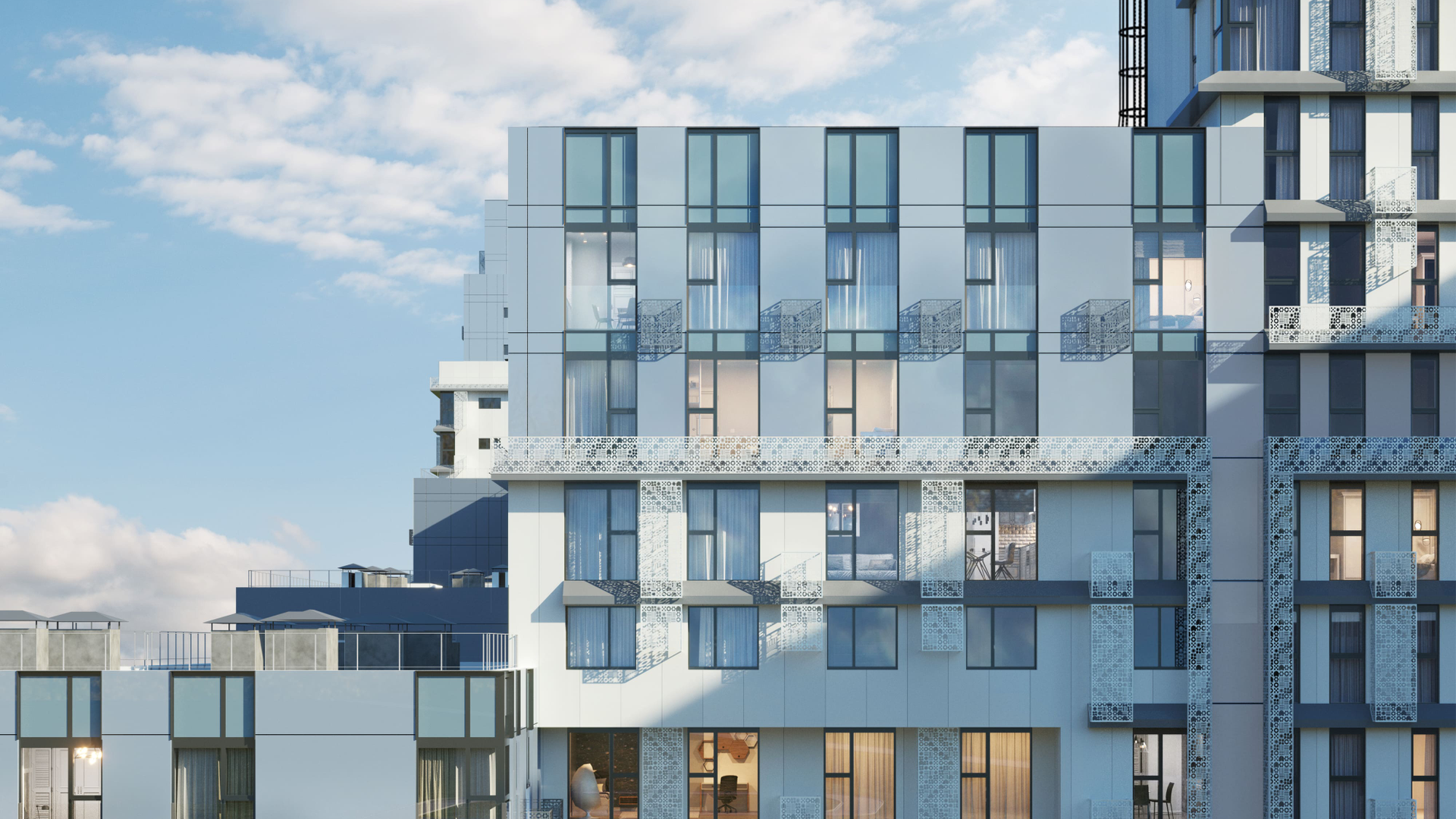 В комплексе представлены квартиры площадью от 21 до 97 м2. Широкий выбор планировок – от студий до трехкомнатных квартир. Есть варианты с угловым остеклением, окнами в ванной и в рабочей зоне кухни. Благодаря широким панорамным окнам в квартирах будет обеспечен высокий уровень инсоляции.