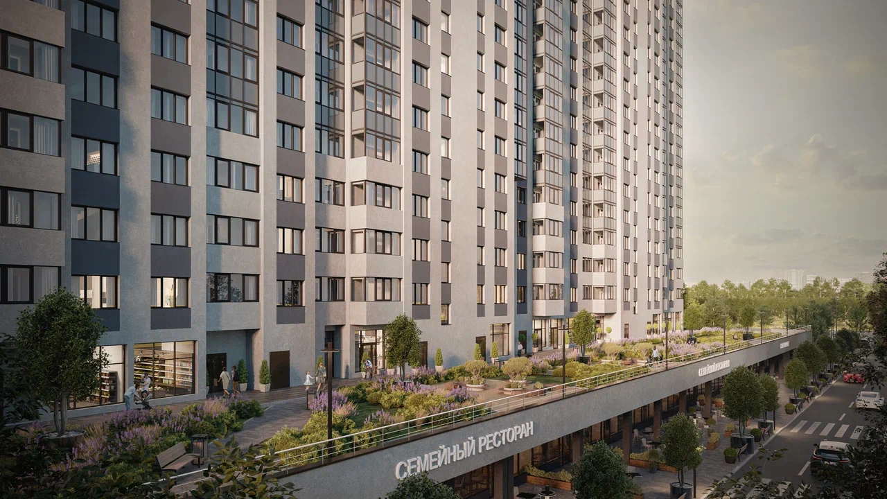 По-настоящему – 2.8 Га – большой двор станет местом притяжения всех жителей. Пространство двора наполнено всем необходимым для отдыха: безопасные детские и спортивные площадки, два игровых корта, сквер с хвойными многолетними деревьями и кустарниками.